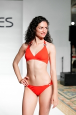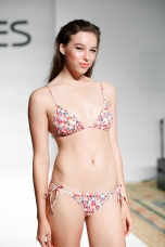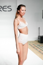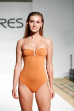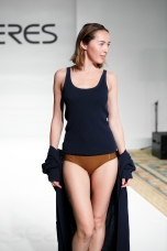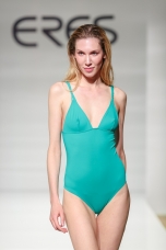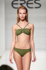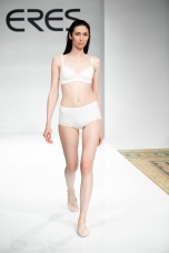 Показ состоял из двух частей: коллекции купальников и нижнего белья. На подиуме продемонстрировали лаконичные купальники ярких цветов, слитного и раздельного фасонов, комбинезоны для пляжа с игривыми поясами и уютную одежду для дома: пижамы, комбинации и халаты пастельных оттенков. Кульминацией показа стали бельевые новинки Eres: прозрачные комплекты из деликатного кружева, минималистичные бра и модели с завышенной талией.