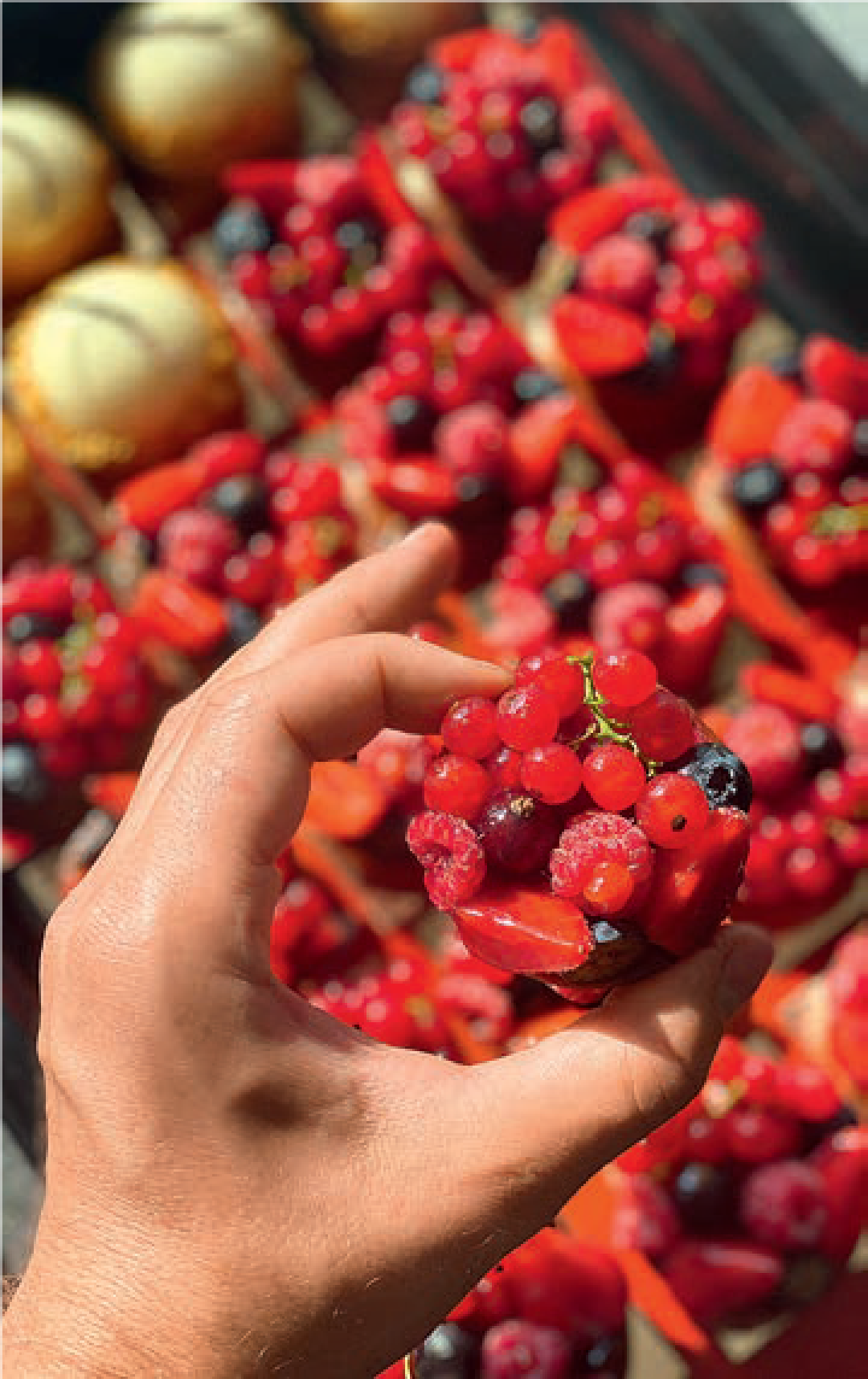 До Ma Cherie у меня уже был опыт работы в кондитерской, и много проверенных рецептов мы перенесли сюда. Но также требовалось создать что-то эксклюзивное и уникальное: так рождались пирожные «Манго», «Мулен Руж», «Керман». Консервативному гостю с классическим представлением о Франции мы предложим попробовать наши хиты – шоколадный и малиновый круассаны. А еще здесь воплотилась моя мечта о полноценной витрине с хлебом, как в настоящих французских булочных. Пока я жил в Париже, убедился, что миф о французе с багетом в руке – это и не миф вовсе: с утра там километровые очереди за хлебом, а отходящий от прилавка человек редко может удержаться и не откусить корочку. Помимо французских багетов, в ассортименте есть фугас в виде листка монстеры, что-то понятное и знакомое в виде бородинского и гречневого хлеба, чиабатта, как щепотка Италии. На днях в наш ассортимент вошел тыквенный хлеб – необыкновенный, ярко-оранжевый на разрезе.