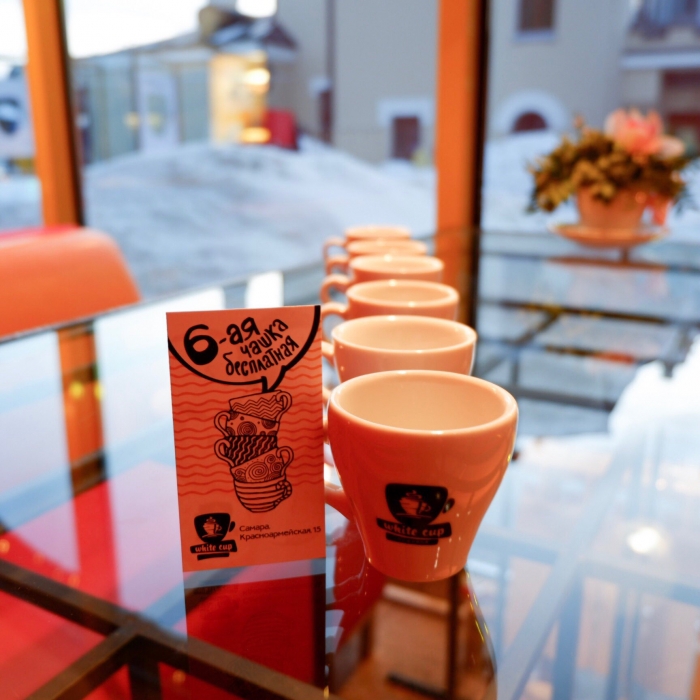 Кофеманы ликуют. Специально для них кофейня White Cup запускает интересное предложение - выпей пять чашек кофе и получи шестую в подарок. Чтобы поучаствовать в акции всем любителям классического напитка нужно только подойти к бариста и взять у него специальную карточку, где будет указан кофейный график. Как только пять чашек будут опустошены, беги за подарком.