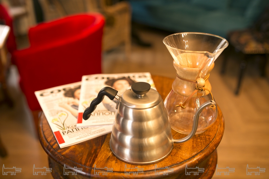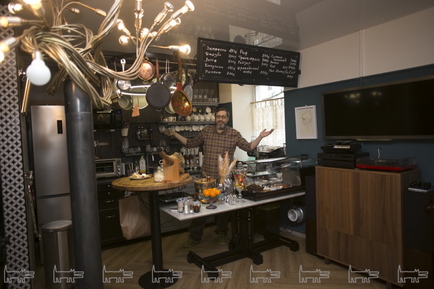 В таком оригинальном месте не может быть стандартного подхода к меню. Над баром висит доска с кофейными и чайными напитками, десерты можно выбрать, подойдя к витрине, а на горячее – блюда из рукописного меню, в котором всего около пяти позиций. Цены выше среднего, зато продукты самые качественные и подача щедрая. Например, к напиткам всегда поднесут безе и шоколадные конфеты, а печеночный паштет – это не просто закуска, а полноценное блюдо. Большинство блюд придуманы Евгением, им же и готовятся и подаются. Кажется, в Самаре появилось настоящее уютное кафе, каких множество в Европе и где владелец – он же и повар, и официант, и креативный директор.