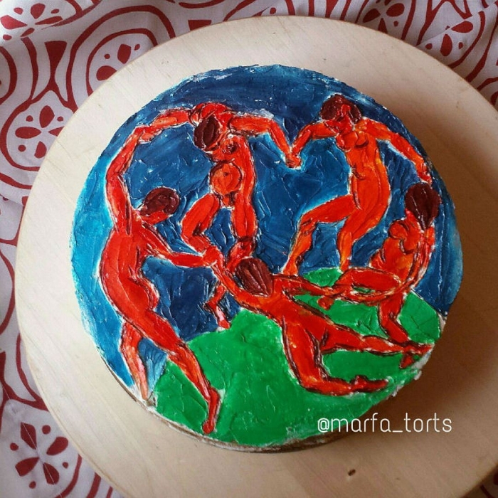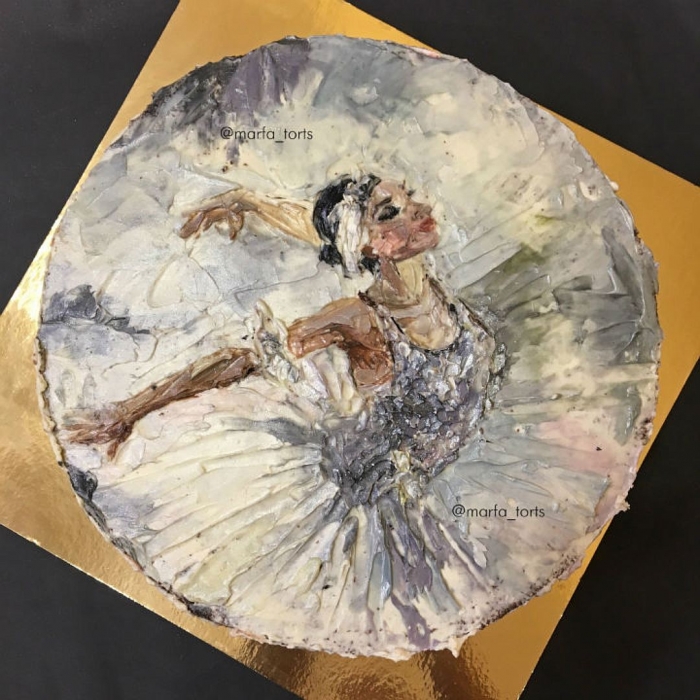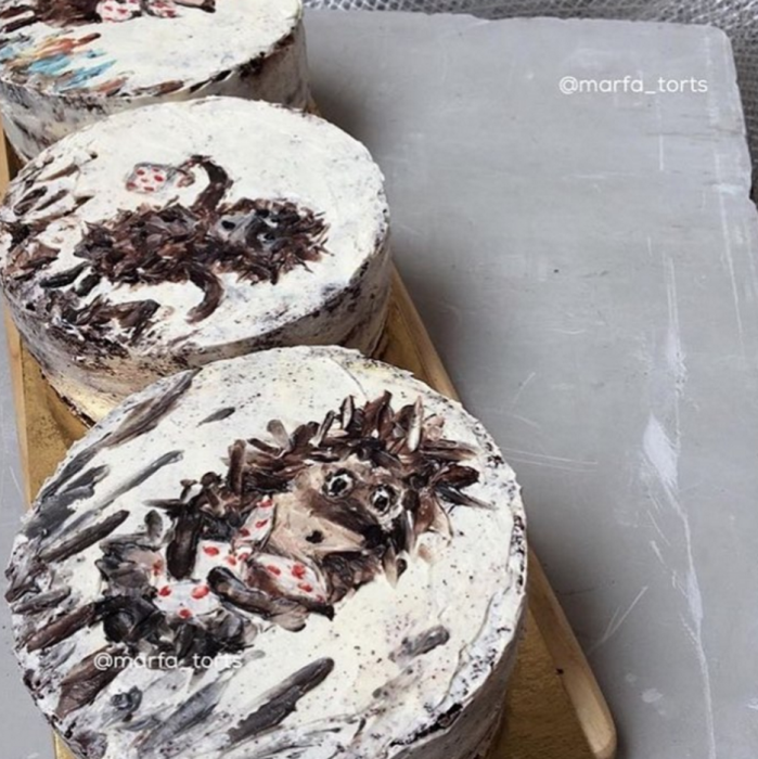 Творческое объединение «Марфа» само себя определяет как «союз кондитера и художника». За роспись отвечает Настасья Черногривова. По ее словам, страсть к живописи и понимание, что следовать проторенными тропами — моветон, привели к художественным опытам на кондитерских изделиях. Сначала среди стилей преобладали абстракции и минимализм, затем появилась живопись с горам, птицам, цветами и фруктами. Однажды художницу попросили написать копию картины Куинджи «Лунная ночь» и скоро копирование картин великих художников стало одним из направлений кондитерского дома. Еще среди авторов шедевров, которые регулярно оказываются на тортах — Сальвадор Дали, Густав Климт, Пабло Пикассо, Валентин Серов, Рене Магритт и другие.