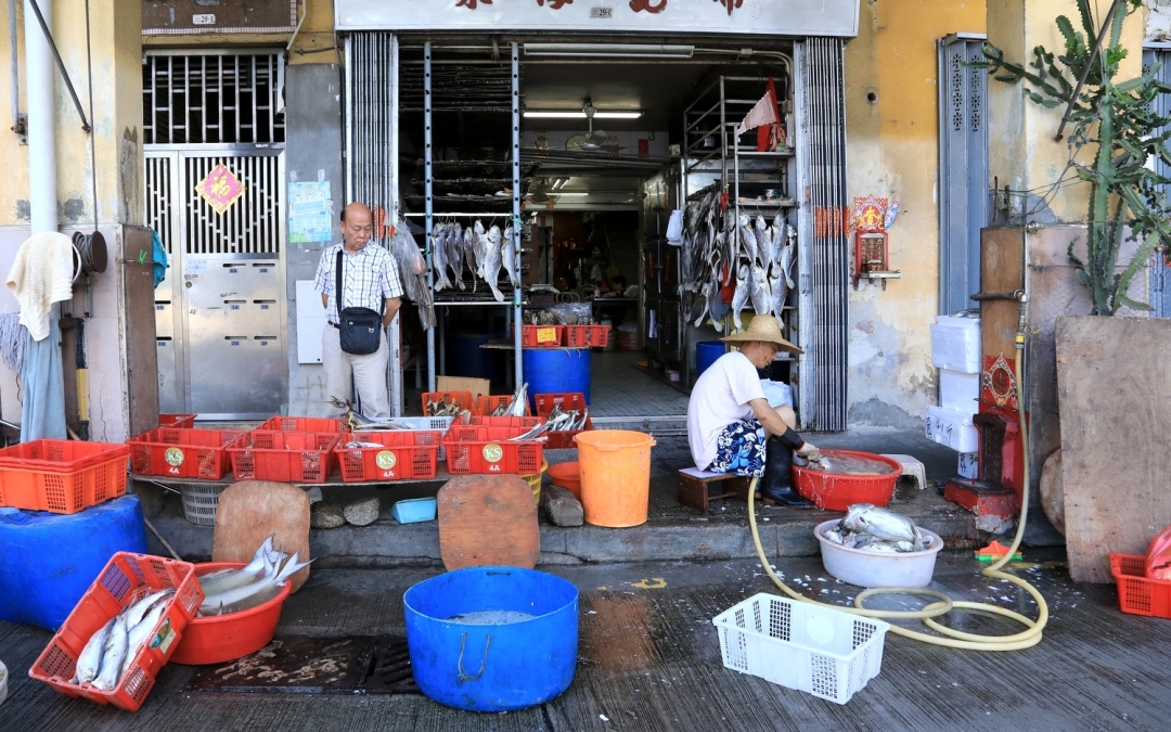 Китайские рынки и так — чудо света. Что и говорить про рыбный маркет полуострова, очерченного от Южно-Китайского моря мощной рекой Чжуцзян. Перечислять их речную и рыбную фауну не хватит печатных знаков: в каждом заливе зоологи насчитывают более 1000 видов рыб — и все они живехонькие лежат на рынке в Макао в поддонах. Как и моллюски всех мастей, членистоногие, иглокожие, ракообразные и какие только не: бойкие бабули-продавщицы едва успевают шумовкой вылавливать их для бойких бабуль-покупательниц. На цокольном этаже всю эту живность продают сушеной: берите похожие на крошечные гребешки вяленые ноги от мидий — идеальная закуска к пиву. Рыбный рынок — крытый, в красно-кирпичном павильоне, остальная торговля идет в переулках под открытым небом. Тут разложены зимние дыни (что-то между тыквой и огурцом), суп из которой готовят прямо в ней, дурианы, гигантские сушеные сморчки, сыровяленные утки и даже живые золотые рыбки. Перекусить надо здесь же — куриными лапками, приготовленными на разный манер, или свиным рубцом.