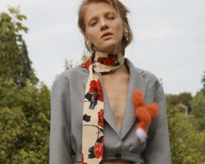 Финалистка нашего конкурса «Новые имена в дизайне 2016» Олеся Шиповская выпускает топы-конструкторы, платья с корсетами, комбинезоны с бархатными вставками, вечерние наряды, блестящие моно-серьги и крупные броши-журавли.
