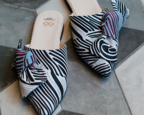 Мила Разгуляева-Благонравова из Петербурга продает обувь ручной работы: джинсовые мюли и тапочки по мотивам работ Дали, Малевича и Матисса.