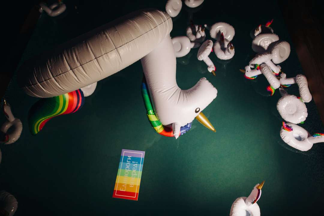 Мне кажется круто, когда у мероприятия есть тематическая линия. Одной из таких была свадьба с единорогами. Ко мне пришли молодые ребята, которые только закончили университет. Соответственно, речь шла о небольшом бюджете, но мы придумали много необычных фишек. Невеста – дизайнер, так что половину из них молодожены делали своими руками. Было тяжело, но итог того стоил. Свадьба проходила в формате вечеринки, то есть без конкретной рассадки. Все было очень яркое, а гости полностью соблюли дресс-код и пришли в белом. Формат нестандартный, и мы сначала переживали за взрослых гостей. У нас же привыкли: сели, поели, тост сказали, потанцевали, вернулись и снова поели. Но вариант вечеринки зашел: вокруг были единороги, подавались разноцветные коктейли и играл диджей.
