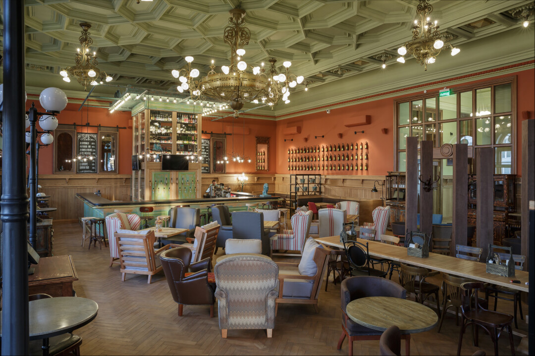 Чтобы оценить работу, которую мы проделали, нужно было видеть состояние здания, в котором мы его приняли: кухмистерская была в ужасном состоянии. Ни малейшего намека на былое великолепие. В итоге мы очень долго воссоздавали интерьеры залов по фотографиям, которых сохранилось очень мало. В этом проекте нет бизнес-составляющей.