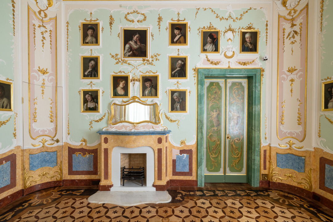 Ключевой особенностью интерьера являются 22 портрета авторства итальянского придворного живописца Пьетро Ротари. Во время революций шесть картин похитили, однако позднее их заменили на похожие, тоже выполненные художником. Полотна объединены между собой лепным декором в виде переплетенных цветочных гирлянд.