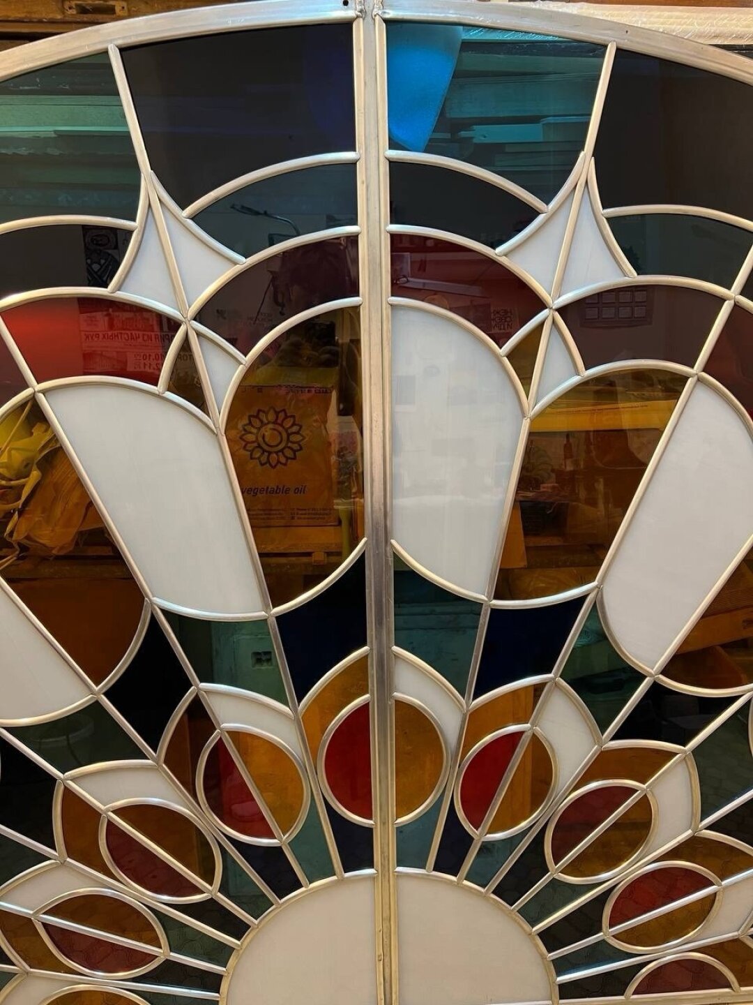 О витраже мне рассказал Миша Митюков после того, как ребята из «Додо Пиццы» вышли на него и попросили оценить его состояние. Следом Миша передал этот объект мне: я взялась за работу в середине июня 2024 года и завершила его за неделю. Витраж был настолько большим, что с трудом умещался в моей мастерской, так что он был в явном приоритете!