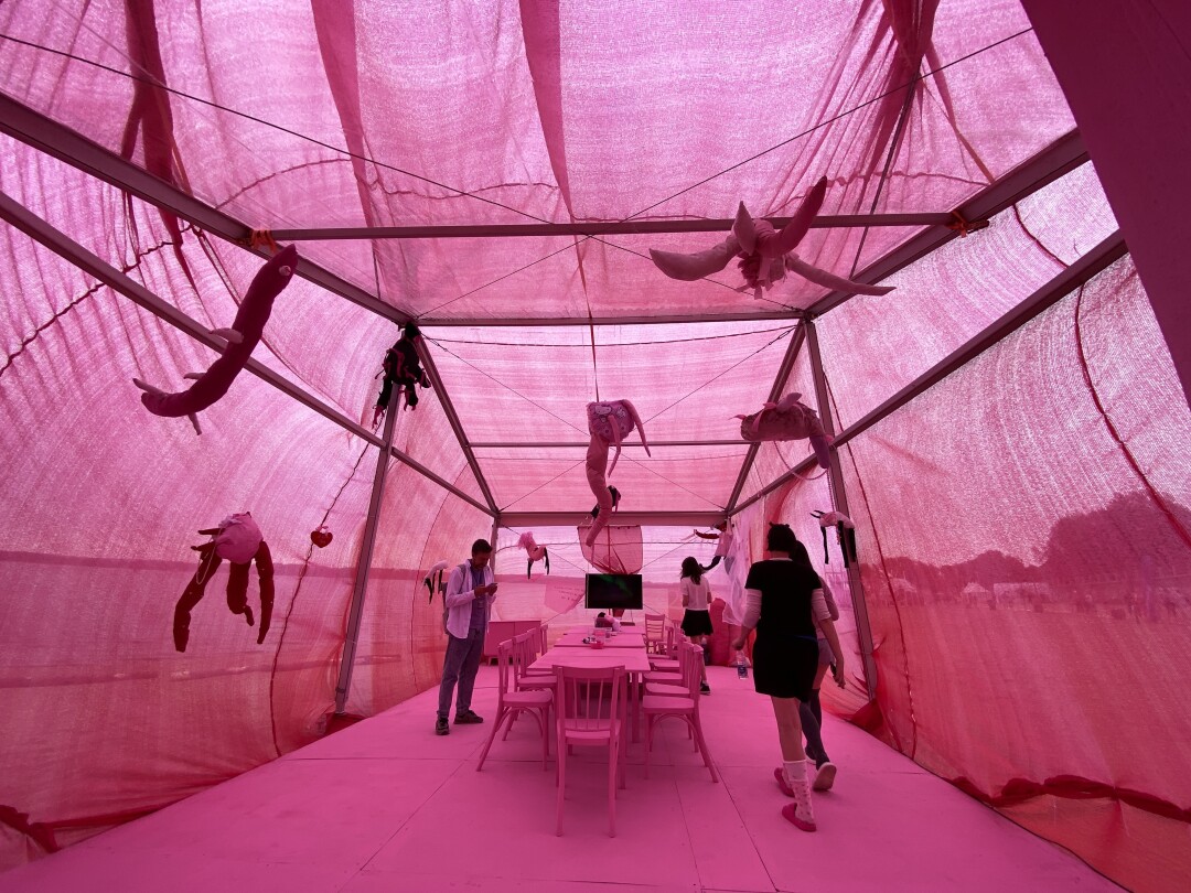 «Обязательно нужно сходить хотя бы один раз на вечерний спектакль "Любовь Любовь Любовь Любовь Любовь”— это одно из главных высказываний фестиваля. Несколько новелл о создании мира и про любовь, рассказанные через акробатику, хореографию и театр теней с живым звуком, который записала талантливый композитор Кира Вайнштейн будут показывать в пятницу, субботу и воскресенье. Важный нюанс: спектакль будут играть на сцене «Лесной театр», которая выглядит так, будто мы с вами за Волгой. А прямо за сценой — шатер Славы Вершинина, где можно попить чай.