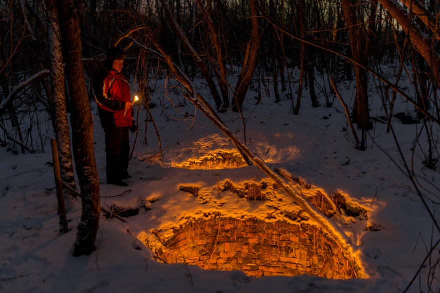 Да, можно и так сказать. Не везде и не всегда на территорию заводов была возможность проникнуть легально. Иногда приходилось пролезать через какую-нибудь дыру в заборе, прятаться от охранников и отбиваться от стай диких собак, облюбовавших руины цехов. Проникнув нелегально, всё время чувствуешь на себе чей-то взгляд и ощущаешь опасность. Звуки хлопающих рам и капающая с потолка вода в пустом здании кажутся звуками шагов. И да, заброшенный завод – опасное место, всё время можно куда-то провалиться и что-то может упасть на голову. Тем более, если это химический завод. Но настоящим сталкером я ощутил себя год назад, когда во время дополнительной программы к моей выставке в нижегородском Арсенале проводил экскурсию «От Белого моря к Чёрной дыре». Я водил группу из почти тридцати человек по заброшенным территориям восточной промзоны Дзержинска, показал легендарные шламонакопители и провёл через территорию заброшенных посёлков. Мы прошли около пятнадцати километров по грязи и бездорожью. И у нас был свой пикник на обочине.