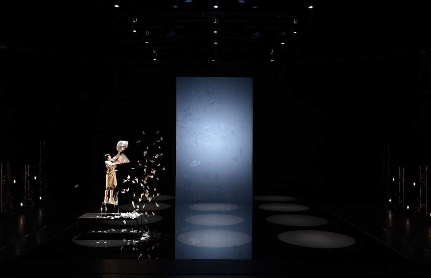 Непревзойденный мастер в области визуального искусства специально для своего пластического спектакля создал впечатляющий водный экран, отражающий все, что проецируется и происходит на сцене, воспроизводя наше восприятие времени и пространства. Тени реальности, наложенные на воображаемое время, превращают место действия в мираж, наполняя его поэзией танца электронов и заставляя задуматься над вопросом: сможет ли искусство или наука когда-нибудь описать этот мир песочных часов?