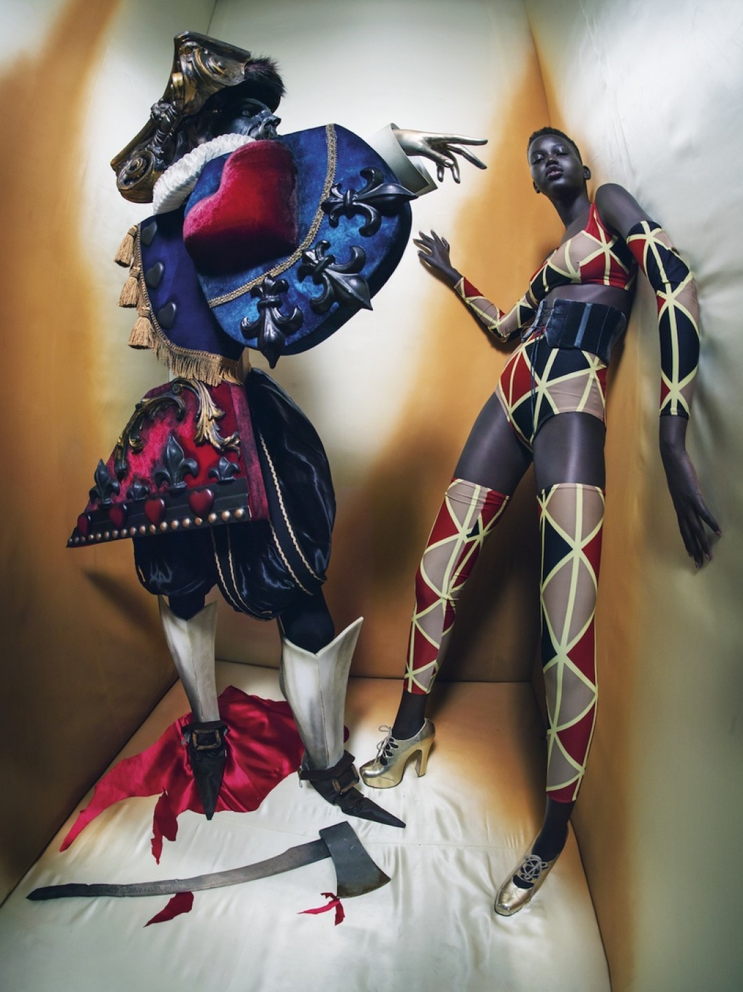 Тим Уокер привлек к съемкам 18 персонажей, как знаменитых, так и молодых, многообещающих талантов, среди которых были музыканты, актеры, телеведущие, писатели, модели и др. С ролью Алисы блестяще справилась австралийская модель суданского происхождения Даки Тот. Наоми Кэмпбелл сыграла Королевского Палача, актриса, писатель и телеведущая Вупи Голдберг превратилась в Герцогиню, Мартовским Зайцем стала Саша Лейн – актриса и продюсер, а адвокат Тандо Хопа перевоплотилась в Червонную Принцессу.
