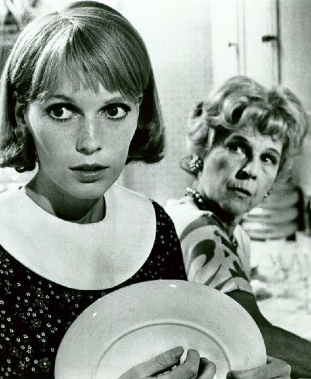 Но продюсеры решили иначе. Мии Фэрроу было 22 года, и она пока известна не столько как актриса (ее единственной заметной работой на тот момент была роль в подростковой мыльной опере Peyton Place), сколько как персонаж светской хроники. Сама Миа, как и ее будущая героиня, была воспитана в строгом католичестве. Ее настоящее имя — María de Lourdes (Мария из Лурда), а это будет даже посильнее, чем Розмари. Незадолго до начала съемок она вышла замуж за Фрэнка Синатру; между ними — тридцать лет разницы. Эта худенькая девчушка с ангельской внешностью и немолодой прожженный шоумен с мафиозной репутацией составили довольно странную пару. Об этом тогда много писали и говорили. Было решено, что таблоидная популярность Фэрроу добавит зрительского интереса к картине, а Полански, присмотревшись к ней и оценив какую-то странную тревожащую ауру, которая исходила от всего ее облика, быстро согласился.