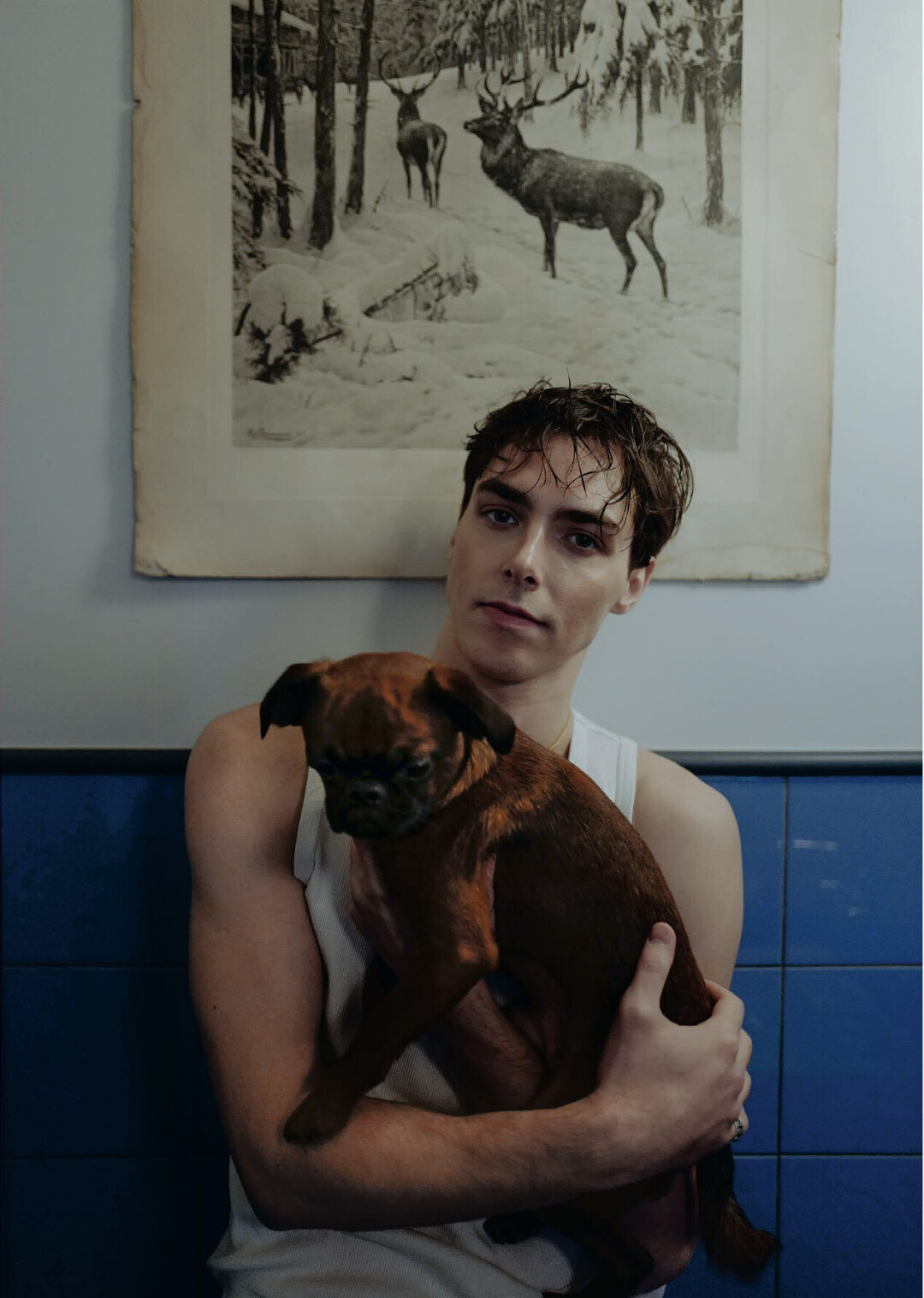 Это Коби, мать его! Мой маленький батончик «Сникерс». Небольшой пес породы пти-брабансон — он у нас появился год назад, мне его на 1 января подарила девушка. Я всегда хотел собаку, но завести не мог из-за аллергии. Самое классное, что аллергия прошла, как только мы его взяли. Организм перестроился. Сначала у меня руки волдырями шли от его слюней и лапок, но прошло время — и полегчало.