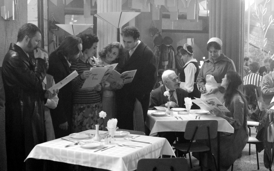 Лагерь в республике Коми, типичное кафе и просмотровой зал «Ленфильма» построила и воссоздала художник-постановщик фильма Елена Окопная.