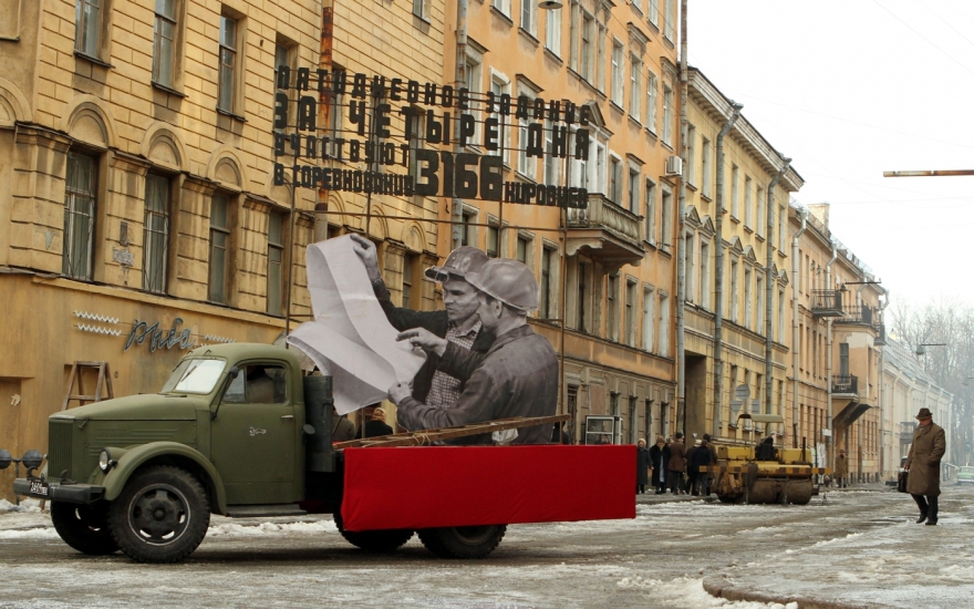 Он шел тяжело и омерзительно. (Смеется.) Большую часть времени я живу в Питере, но, как выяснилось, я преувеличивал историческую сохранность очень многих мест в городе. Я написал массу сцен, которые оказалось просто невозможно снять, даже если речь о коридорах и гримерках БДТ периода его расцвета или даже просто об улицах города: в здании театра прошел евроремонт, и теперь двери, стены полы стали совсем другими, а множество домов выкрашены сегодня в жизнерадостные розовый и фисташковый цвета, которые невозможно было себе представить в Ленинграде 1970-х. Даже желтый сейчас и желтый тогда — разные.