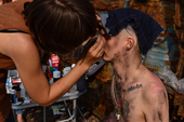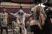 Опыт создания такого грима у меня уже был. Конечно, предварительно мы обсуждали со съемочной группой каждый образ, это только кажется, что здесь собралась кучка грязных людей, на самом деле все тщательно продумано. Грим – это жидкие и сыпучие специализированные краски, где-то просто используются тени серо-коричневой гаммы, а грязь – это черная пудра и густая супра, в зависимости от того, какого надо добиться эффекта. Как правило я работаю либо фэшн- либо свадебным стилистом, когда все приходится делать понежнее, полайтовее, но душа часто требует иного».