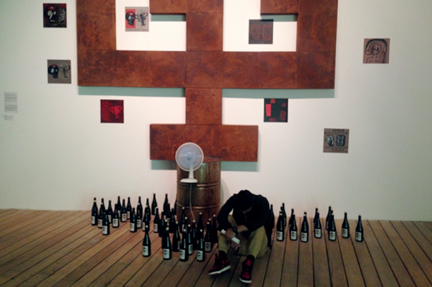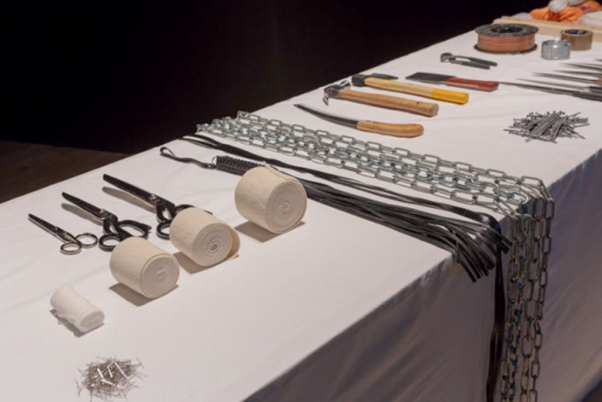 Встретившись с Натаном у главного входа в парк Горького, я была удивлена: он оказался скромным парнем, который два года назад переехал в Москву из Алма-Аты и дерзить никому не собирался. Вот оно — чудо сценического образа! «Модно быть простым, а не понтовым», — объяснил он мне свою жизненную позицию. Я предупредила рэпера, что нас ждет большая выставка «Грамматика свободы. Пять уроков», организованная в сотрудничестве с Музеем современного искусства в Любляне. Нашей задачей было впитать месседж работ художников из Восточной Европы и бывших республик СССР, созданных в период с 1960-х годов по наше время. Мы вошли в первый зал, где на стенах транслировалось несколько черно-белых видео. Натан встал как вкопанный перед первым полотном с роликом «Бокс», в котором голый дядька дрался с призрачным оппонентом, тоже ню. Чтобы двинуться дальше, мне пришлось дернуть его. Дальше сиял в подсветке своим содержимым стол — мечта садомазохиста: на нем красовались отполированные ножи, топоры, гвозди и прочие забавы бэдээсэмщика.