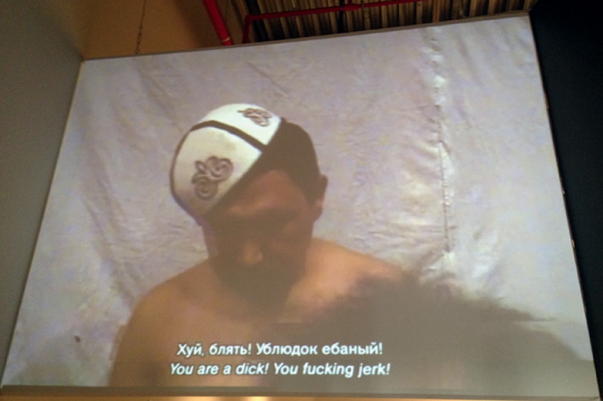 Мы остановились у другого видео, где таджику лепят пощечины в сопровождении мата в субтитрах на русском и английском языках.
