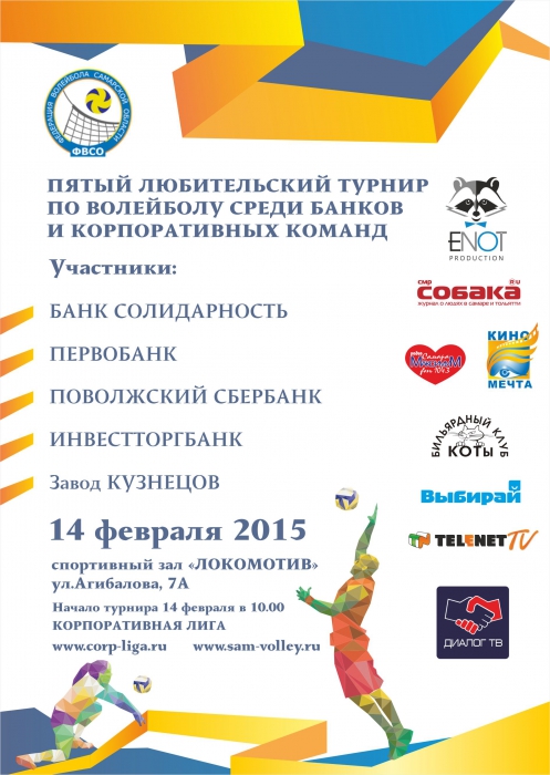 14 февраля состоится ежегодное соревнование по волейболу среди банковских структур и других корпоративных команд г. Самары и губернии.
