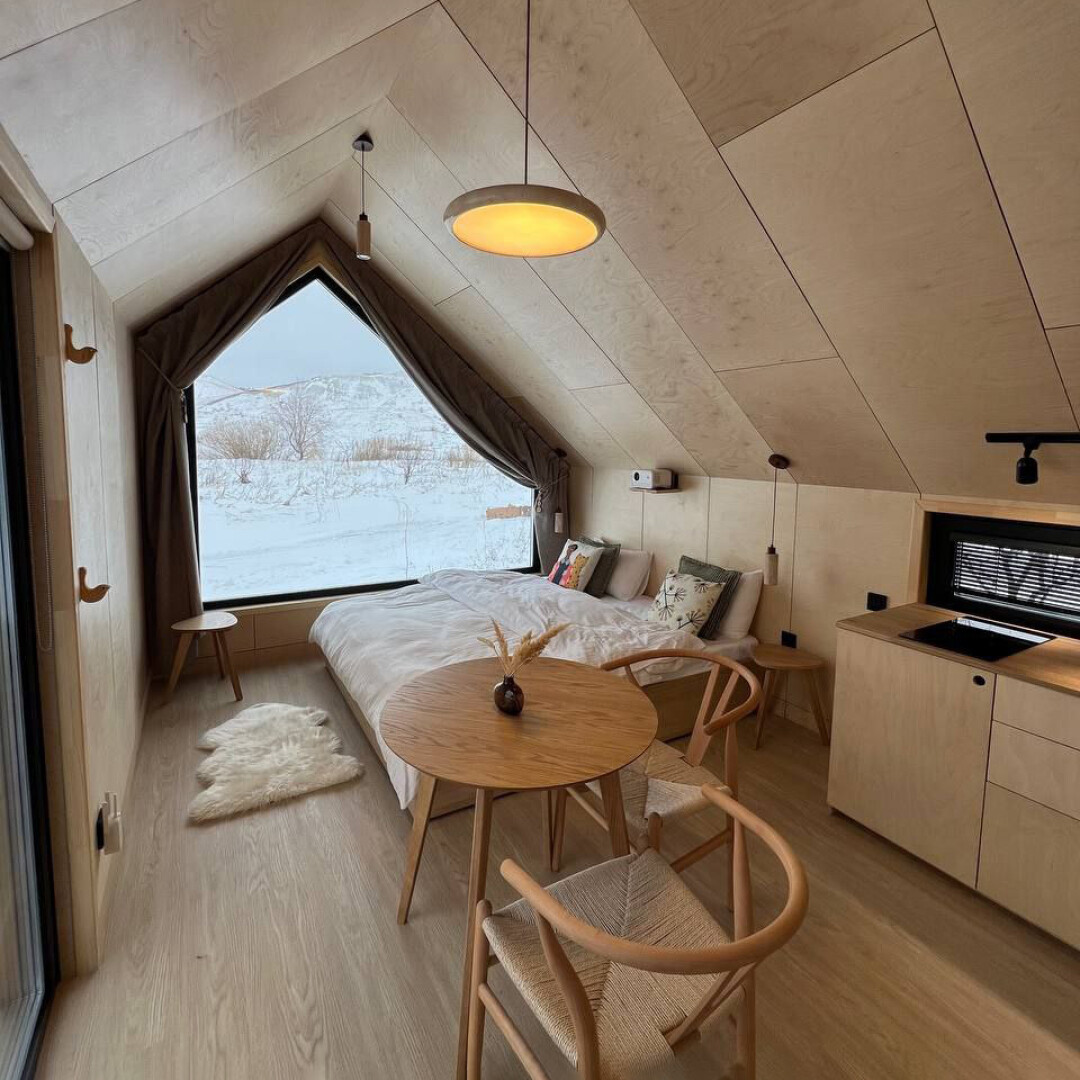 После знакомства с зимними Рачейскими Альпами, часовой прогулки по Каменному лабиринту и подъема на смотровую площадку с качелями советуем отложить дорогу обратно – в Самару – на следующий день. Переночевать поблизости можно в глэмпинге Alpen Camp: он находится недалеко от основных природных достопримечательностей Рачейки. На выбор предлагают три всесезонных дома с теплыми полами, панорамными окнами и камином.