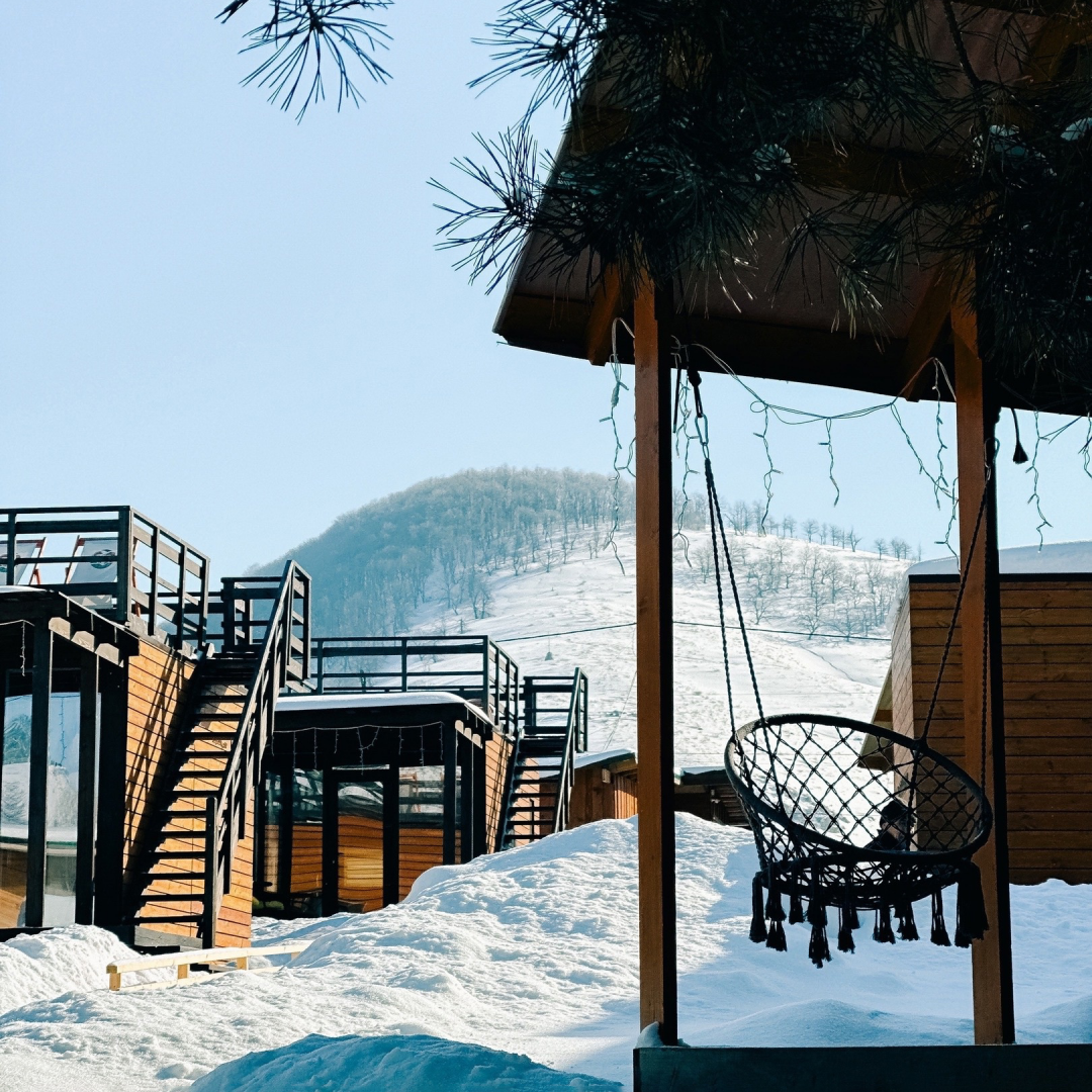 Этой зимой случилось долгожданное – для всех, кому действительно важен отдых как можно дальше от города – открытие: в Alpha Glamping появилось три зимних домика. В них есть и большая ванна, и spa-мини-бар, и проектор для просмотра фильмов, а рядом с каждым – мангальная зона. В общем, все то, что необходимо после зимних прогулок по Подвальским террасам – обязательно с заходом на гору Ильинка, катаний на коньках, ватрушке и санях. Да, как в детстве, даже круче.
