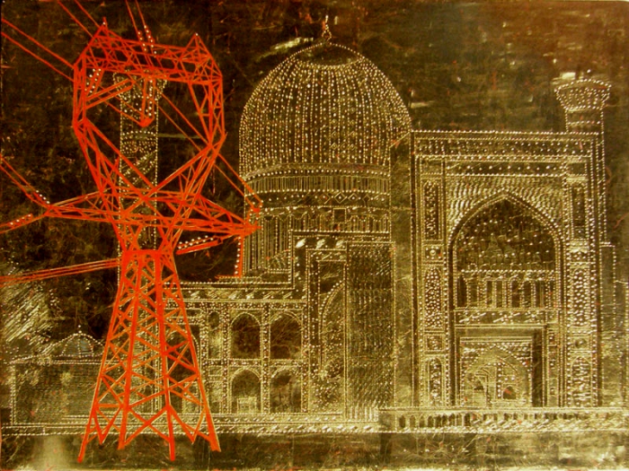Живущая между Москвой и Миланом художница Елена Траилина работает в технике чеканки по сусальному золоту, серебру и другим металлам (а также экспериментирует с разными другими небанальными материалами вроде битума или автомобильной эмали) с применением элементов живописи на доске. На выставке в AL Gallery будут полсотни работ, образующих четыре тематических блока: двухмерные пейзажи, Китай, Лондон, арабский мир.