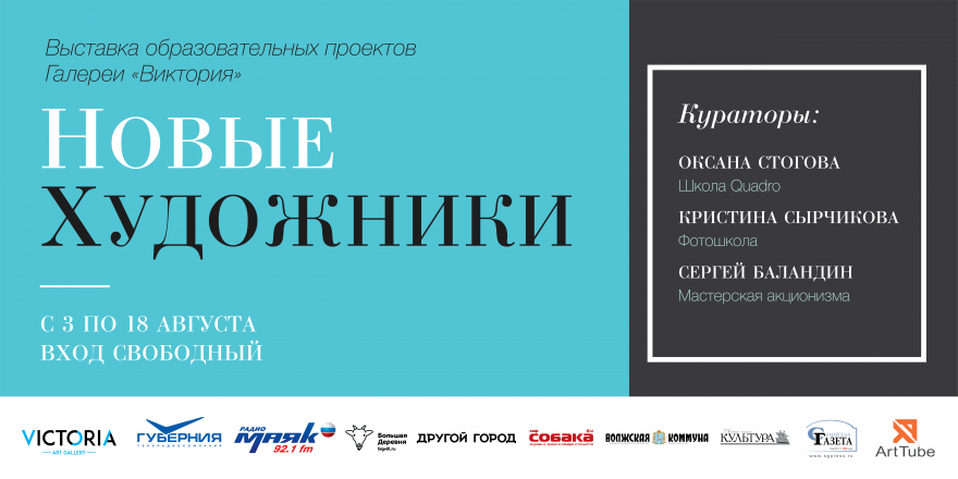 У художников тоже есть школы. Например, в галерее "Виктория" их целых три: школа современного искусства Оксаны Стоговой, фотошкола Кристины Сырчиковой и Мастерская акционизма Сергея Баландина. И, если обычных устраивают капустники и прочие выступления, чтобы показать таланты ребят, в этих школах организуют выставки.