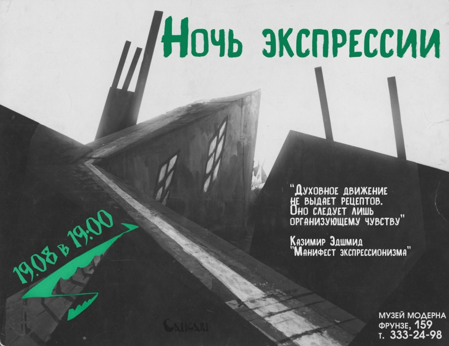 Музей Модерна посвящает этому направлению ночь 19 августа. Посетителей ждут кинопоказы с экспериментальной озвучкой, загадочные декорации в стиле Кабинета Доктора Каллигари, возможность поучаствовать в экспрессионистском мастер-классе и концерт самарских музыкальных коллективов. В качестве хэдлайнера выступит самарская группа INTERGVLVCTIC.