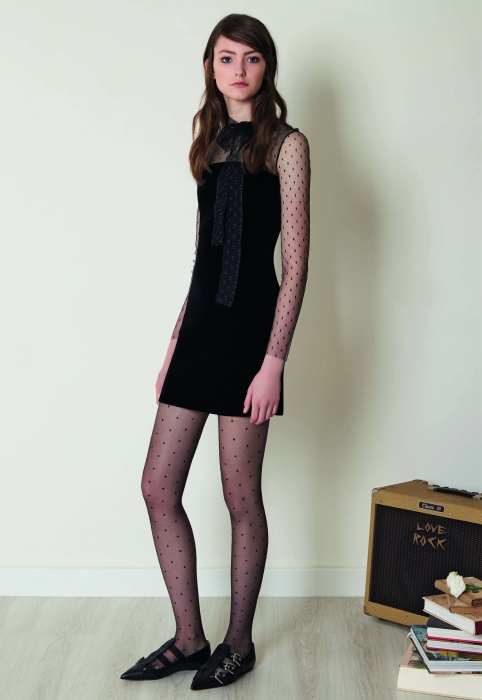 Благодаря стайлингам pre-fall-коллекций капроновые колготки в сетку или узор перестали быть моветоном. Кроме того, они даже могут быть частью праздничного наряда, как показывает лукбук Red Valentino.