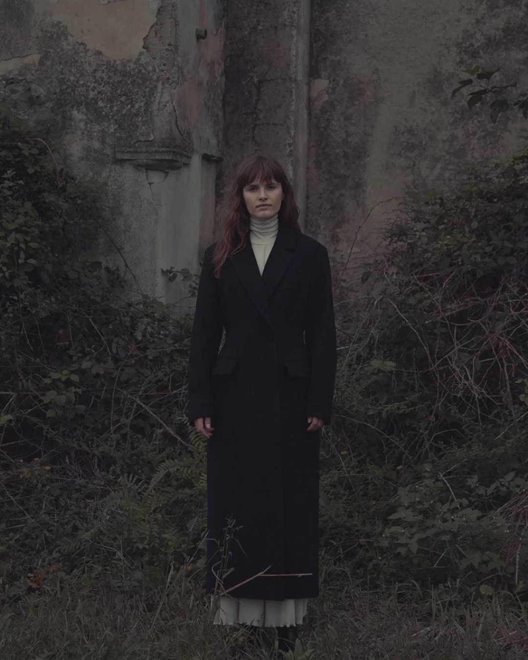 My812 представил на конкурс осенне-зимнюю коллекцию, посвященную спокойствию и тишине, которые появляются после принятия сложного решения. Трикотажные платья и платья из органзы, грифельные и пудровые пальто с высоким воротников и поясом сняты на фоне холодных пейзажей Северной Италии и озера Гарда – именно там был сделан кампейн бренда.
