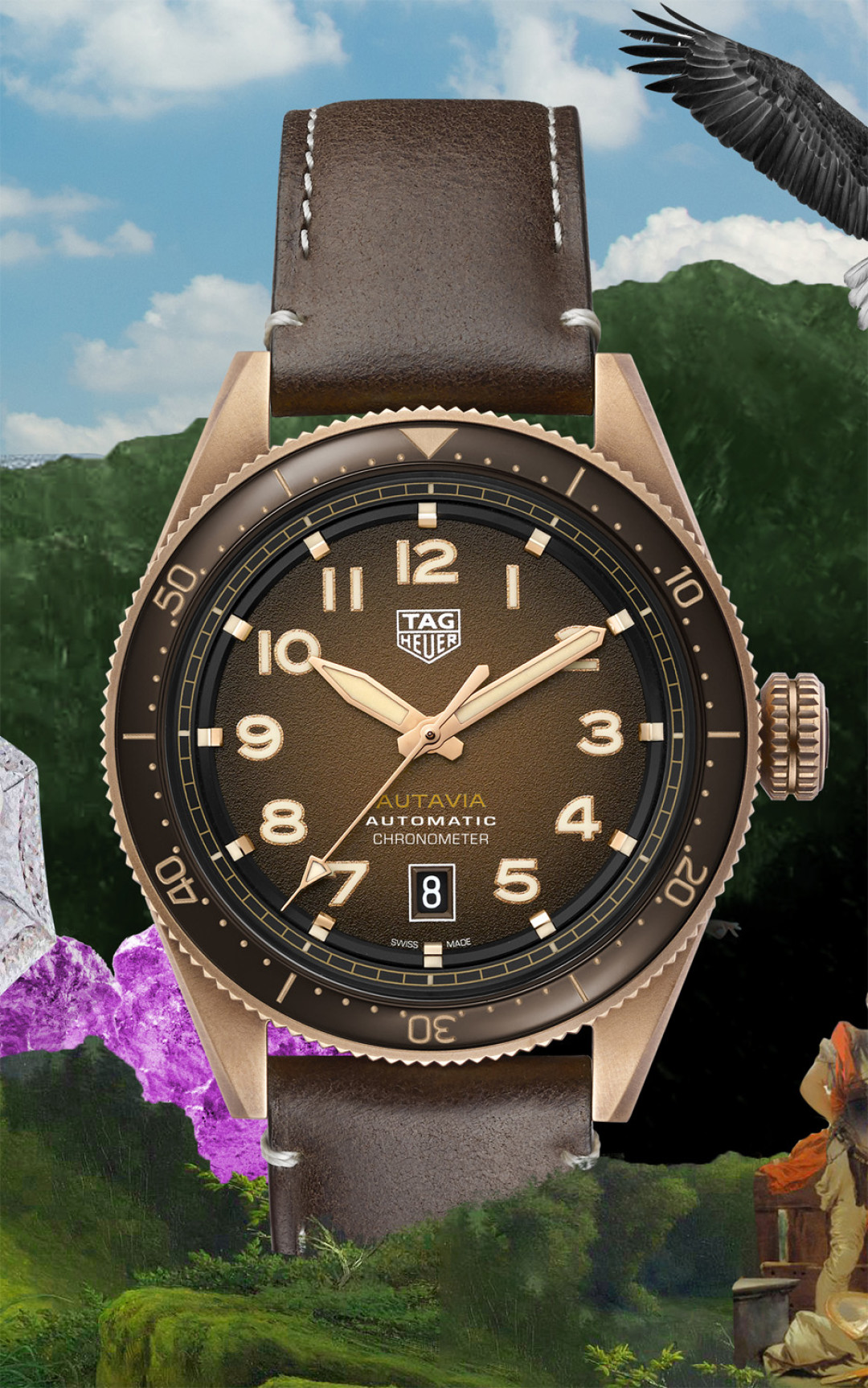 Трехстрелочник с автоподзаводом Calibre 5, сертифицированный Швейцарским институтом официального тестирования хронометров (COSC), готов нырять на сотню метров. И с каждым заплывом будет равномерно окисляться по сатинированному 42-миллиметровому корпусу из бронзы. Регулировать этот процесс можно, но наблюдать за стихийной сменой красной патины на зеленую гораздо интереснее, раз уж к воздействию магнитных полей и к коррозии сплав абсолютно равнодушен.