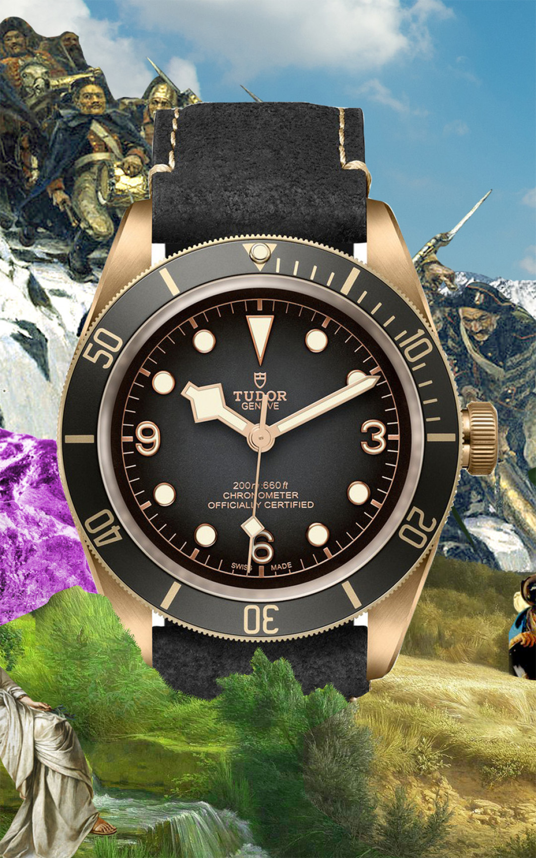 Чтобы торжественно ворваться в Россию (а конкретнее — в ДЛТ), швейцарцы не стали ждать столетнего юбилея Tudor в 2026-м. И чудно! Основанная «папой» Rolex Гансом Вильсдорфом компания когда-то поставляла часы европейским подводникам. Теперь честь им отдает 43-миллиметровый корпус из той же бронзы, из которой ковали детали такелажа и рамы иллюминаторов. Бронзовые у этих водостойких до двухсот метров часов также безель, заводная головка и застежка ремешка. Мануфактурный калибр МТ5601 сертифицирован COSC как надежный хронометр и не требует подзавода 70 часов — целые продленные выходные.