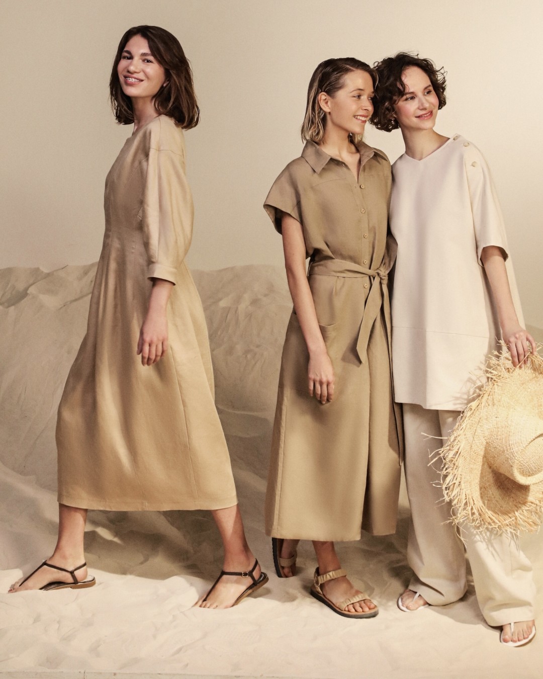 Российский бренд 12 Storeez выпустил лукбук льняной коллекции, в котором снял не профессиональных моделей, а покупательниц марки. На фоне хребтов из искусственных песков – напоминающих о том, что лето не за горами – четыре девушки примерили платья, шляпы и костюмы из новой линейки. Героинями проекта стали челюстно-лицевой пластический хирург Екатерина Лонская, врач-стоматолог Дана Бирер, студентка Международного института экономики и финансов Екатерина Солодянкина и персональный стилист по волосам (из Петербурга!) Евгения Миршурукова.