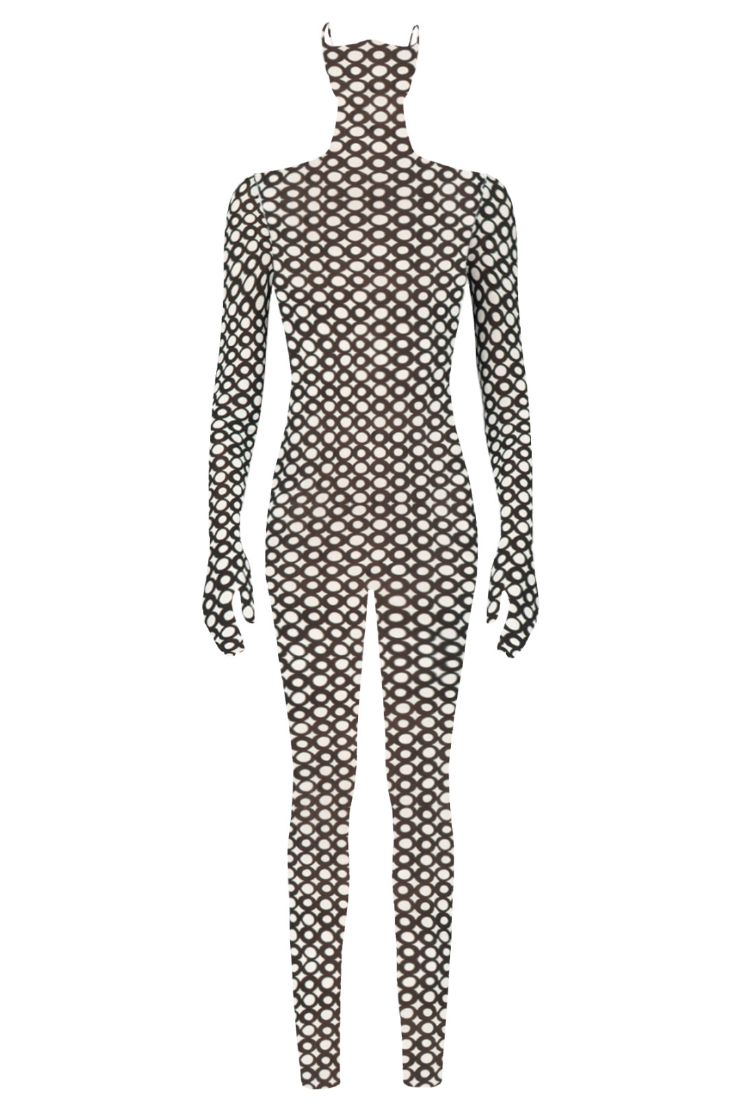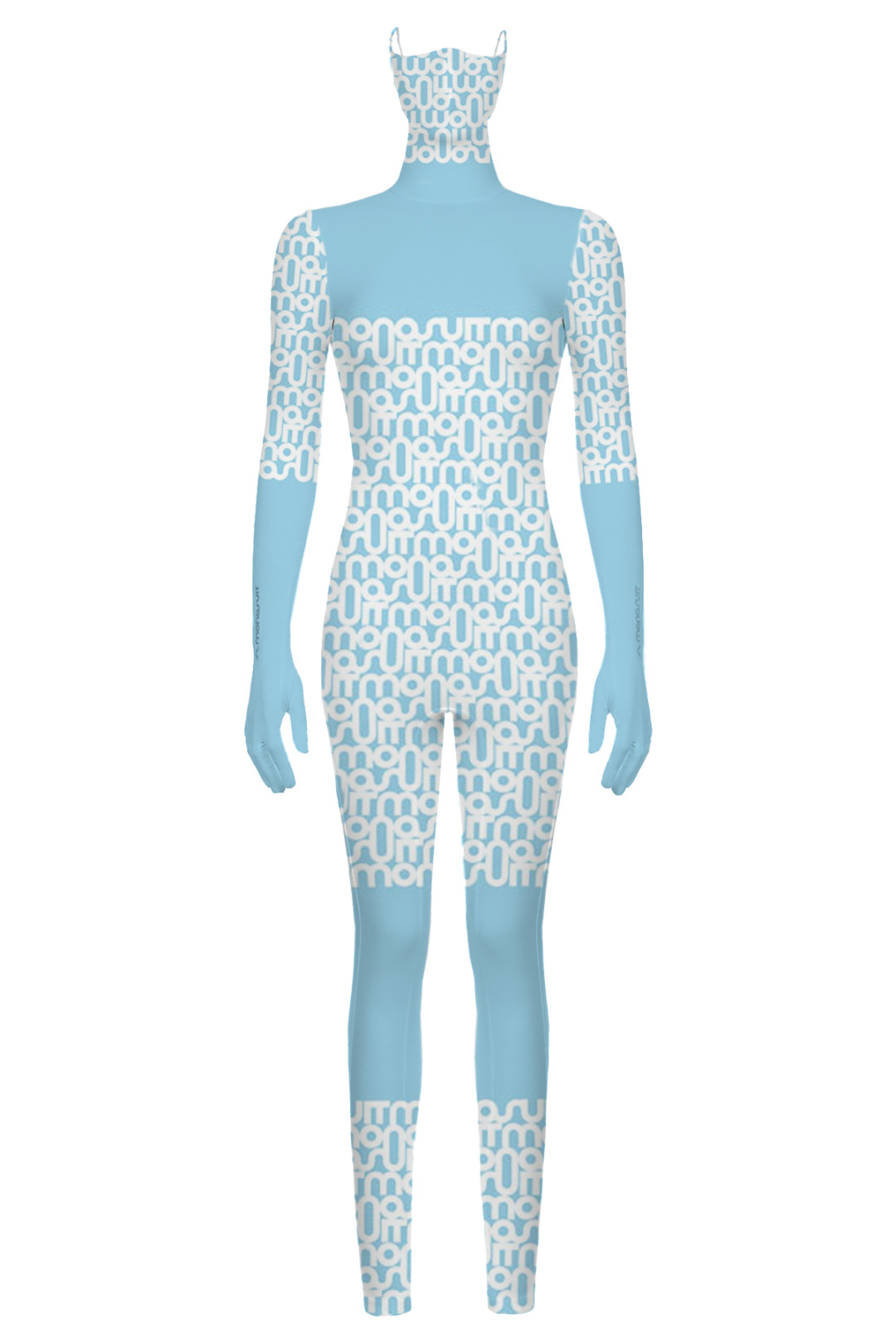 Моносьюты отшили в четырех цветах (черном, белом, лимонном и голубом), а также с геометрическим и леопардовым принтами и логоманией. В области пояса к костюму добавили потайные молнии, что помогло решить вопрос с посещением туалета. Перчатки также можно отстегнуть при необходимости, как и маску – ее можно превратить в воротник. К комбинезону можно добавить защитный экран Сovisor, созданный Monosuit в коллаборации с дизайн-бюро Igrushka.