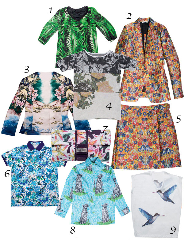 От васильков с мейсенского фарфора до африканской птицы фламинго: география принтов — весь земной шар, захватывая небесное царство и подводный мир.