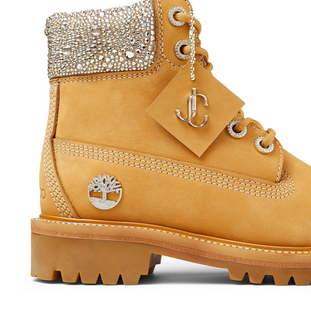 Английский бренд Jimmy Choo объединился с американским Timberland, чтобы создать капсулу обуви. В нее вошли четыре модели, одна из которых — лимитированная. Она украшена кристаллами Swarovski, и представлена только в количестве пятидесяти пар во всем мире.