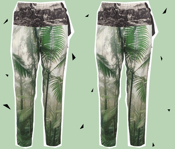 Дрис Ван Нотен переиначил тему флоры по-своему — без ярких красок и броских деталей. Шелковые брюки дизайнера украшены пейзажем туманных джунглей и репродукцией гравюры четырехвековой давности.
