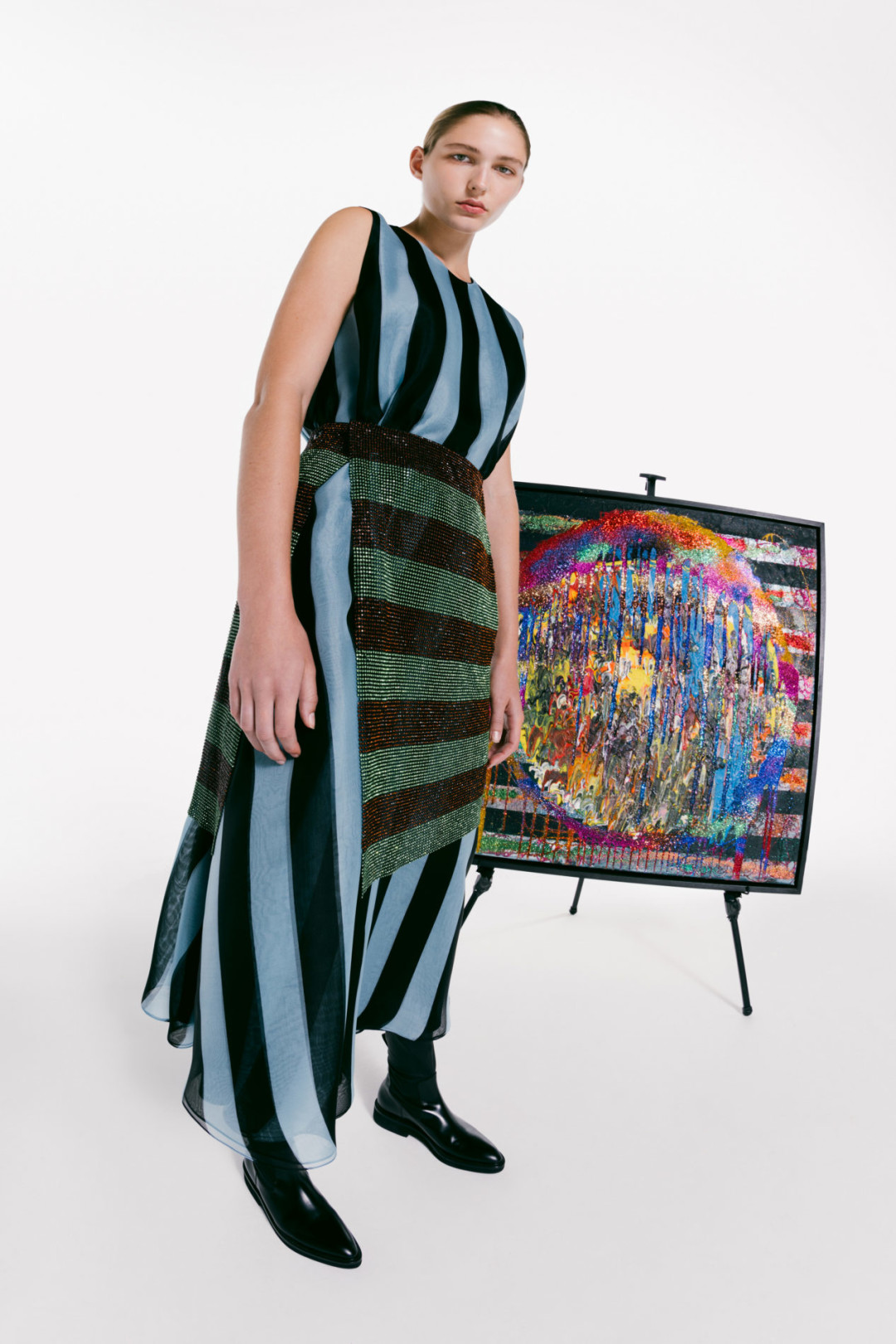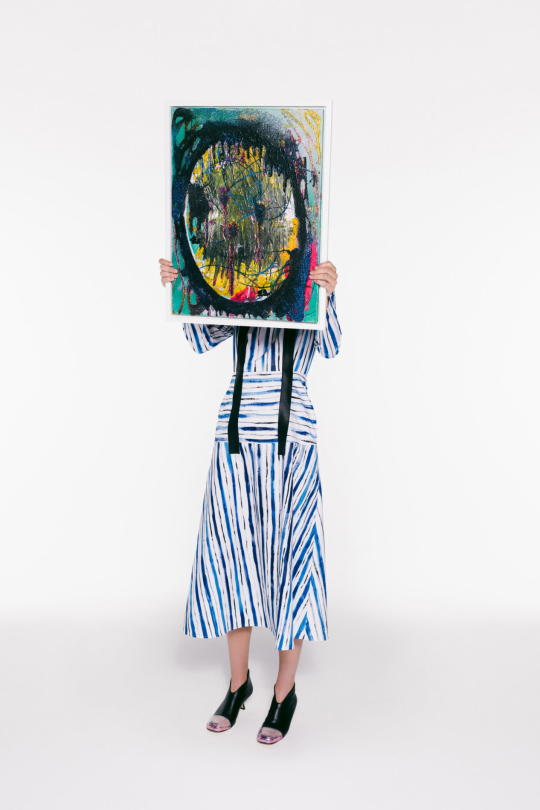 Коллекция весна-лето 2021 основателя и креативного директора бренда Кристофера Кейна получила название Home Alone, что отсылает нас, конечно, к локдауну и месяцам изоляции. Именно в это время Кейн создал художественные работы, которые стали основой новой коллекции и ее лукбука. Christopher Kane показал платья, юбки и пиджаки лаконичных силуэтов с абстрактными принтами.