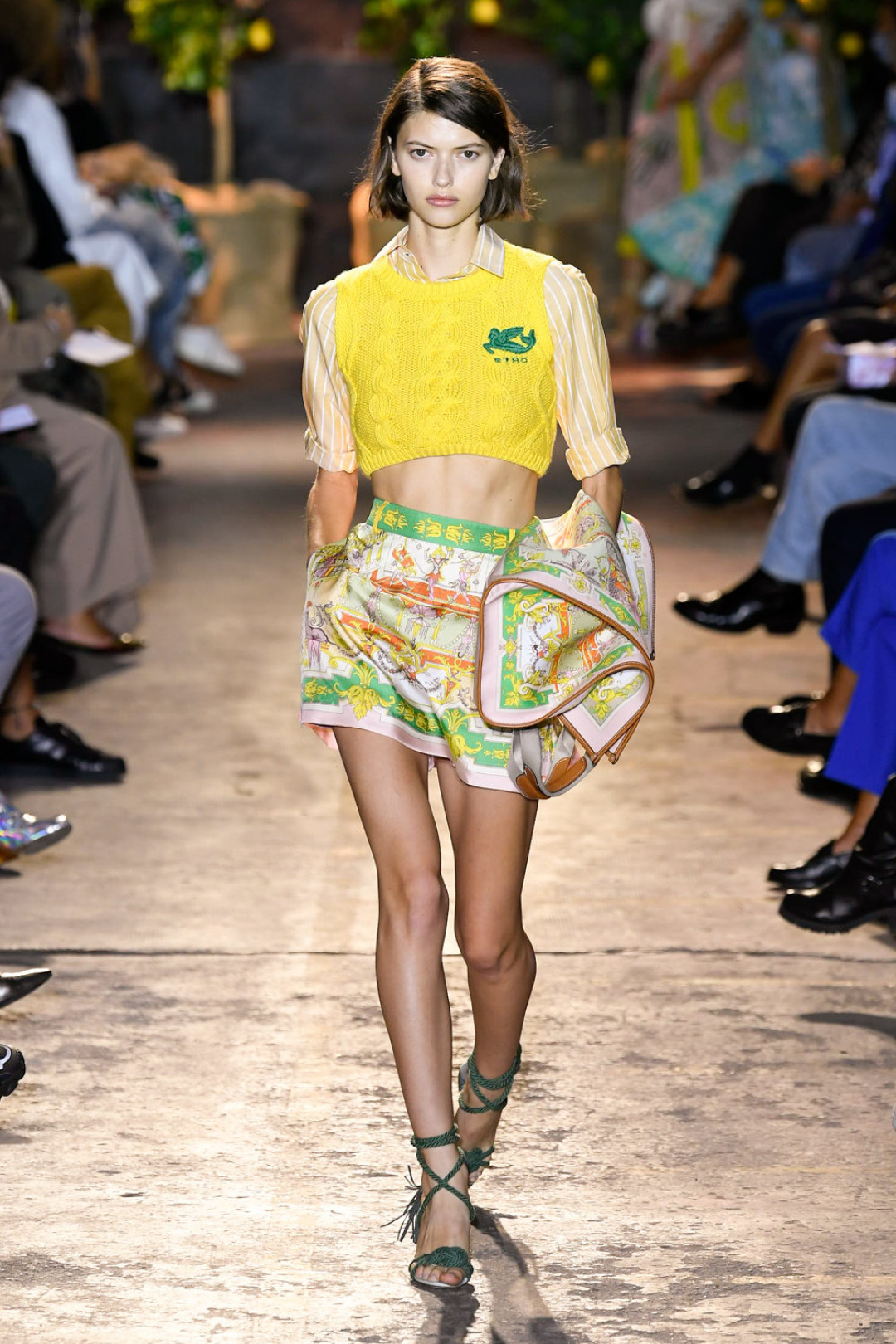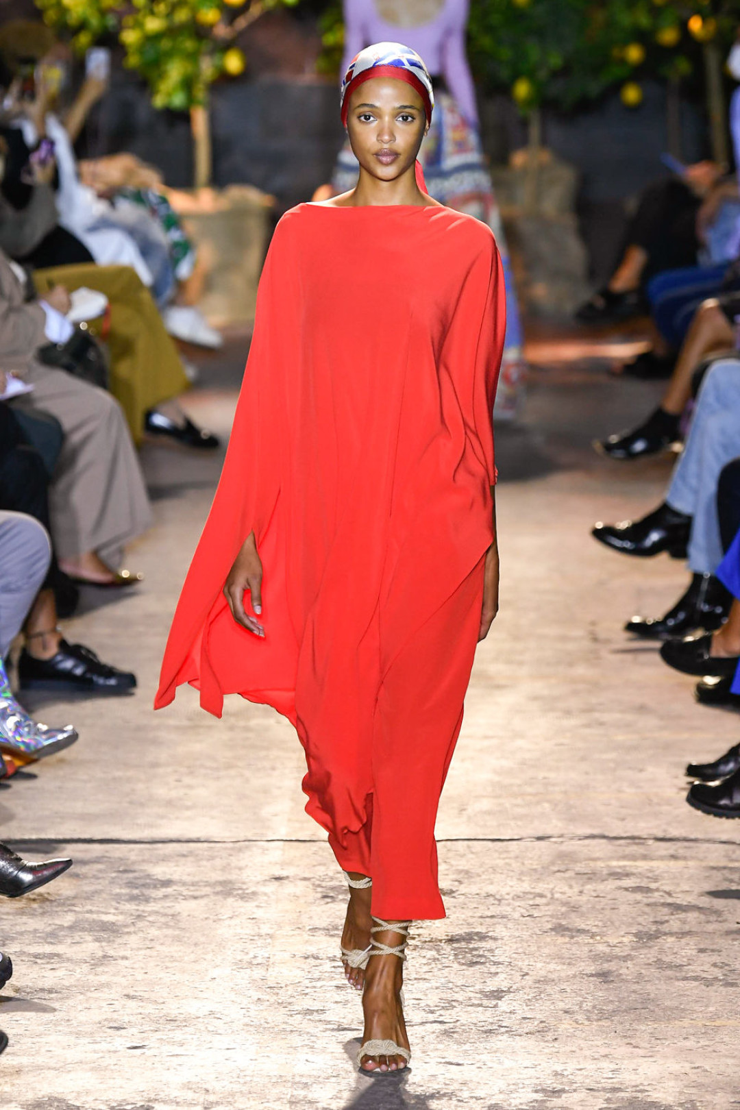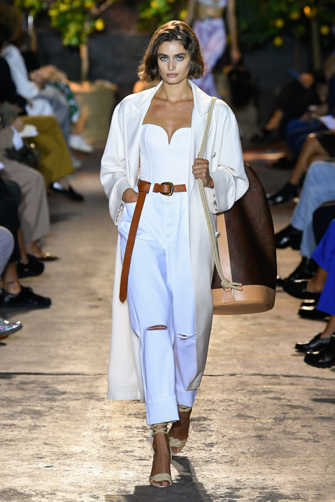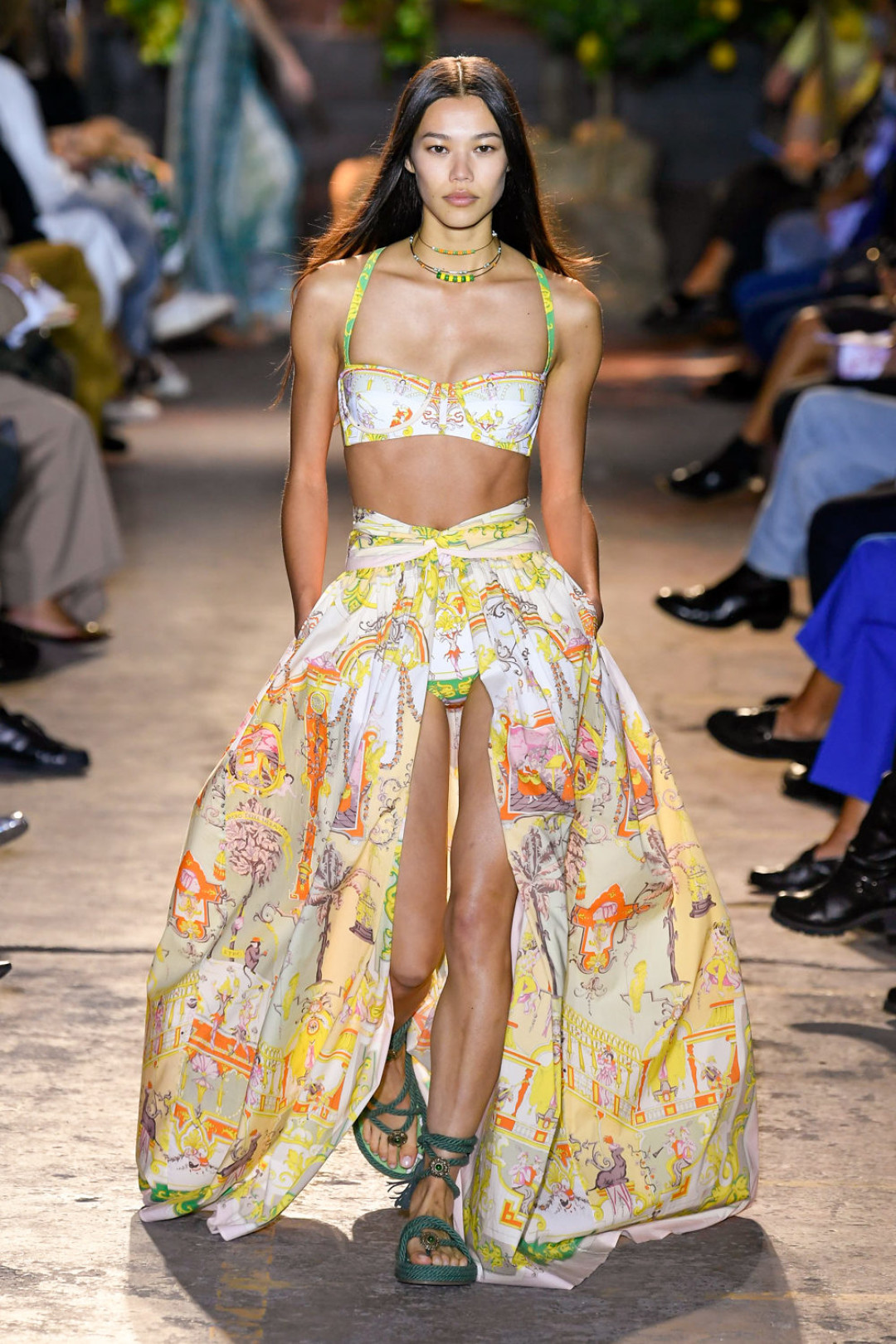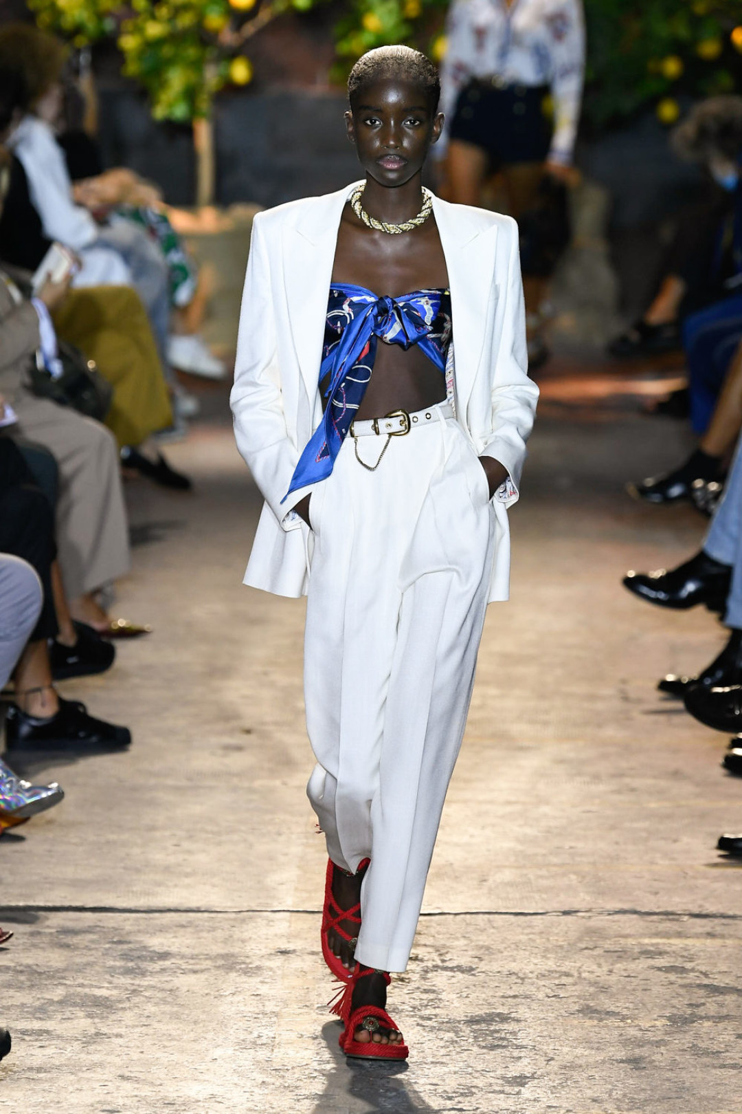 Бренд показал по-настоящему летнюю, даже отпускную коллекцию с мини-шортами и шортами-бермудами, платьями и юбками-парео, топами бра, туниками, рубашками, завязанными на животе, соломенными шляпами, косынками и сандалиями на плоской подошве. Бонусом — вместительные пляжные сумки. Большинство вещей созданы из легких, струящихся материалов.