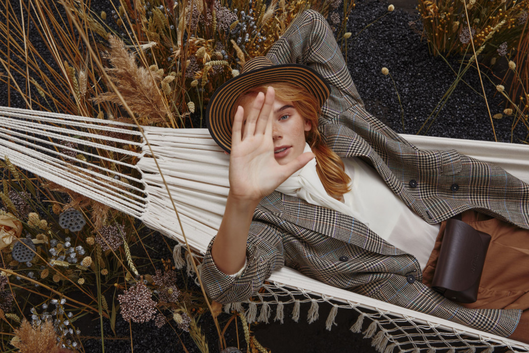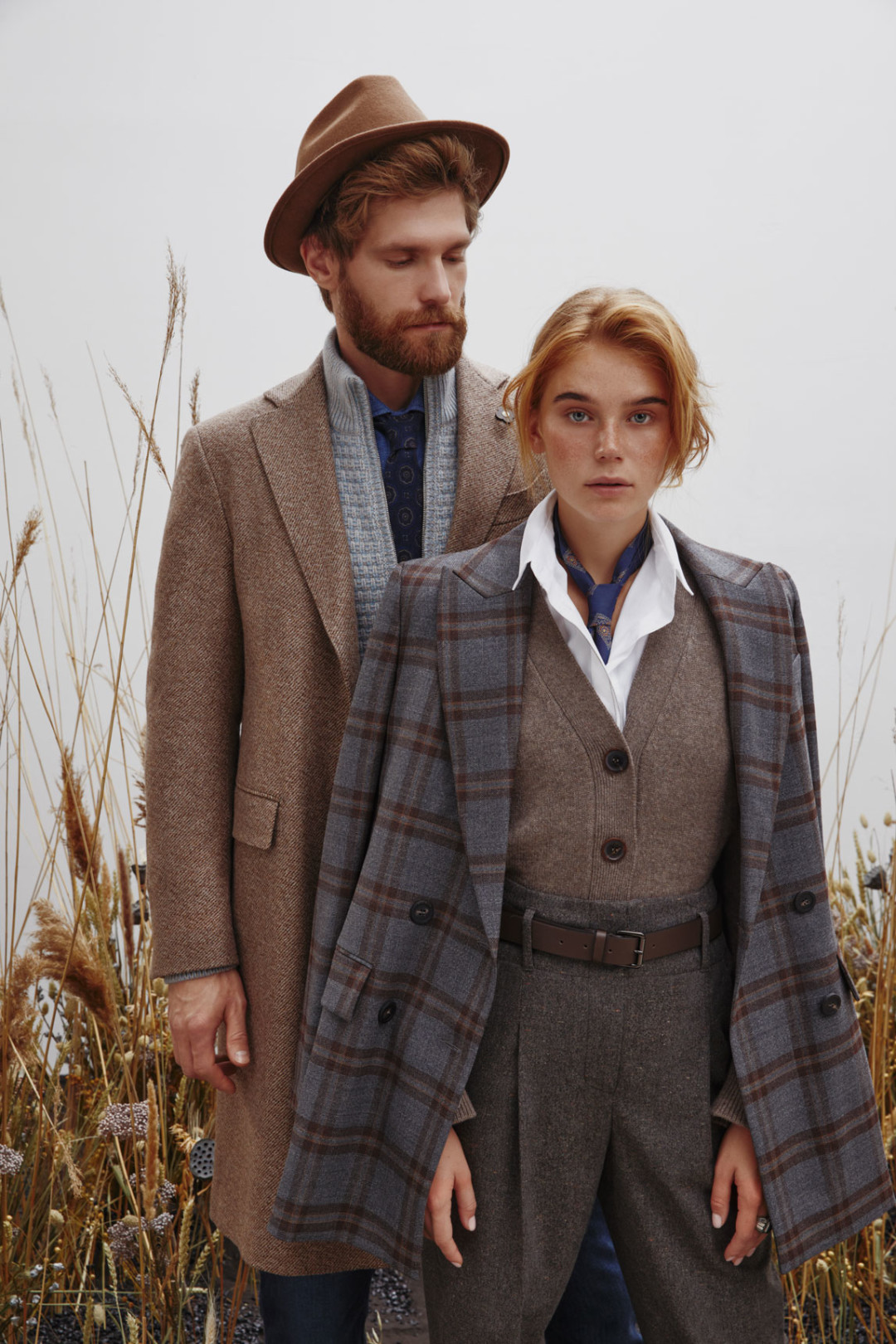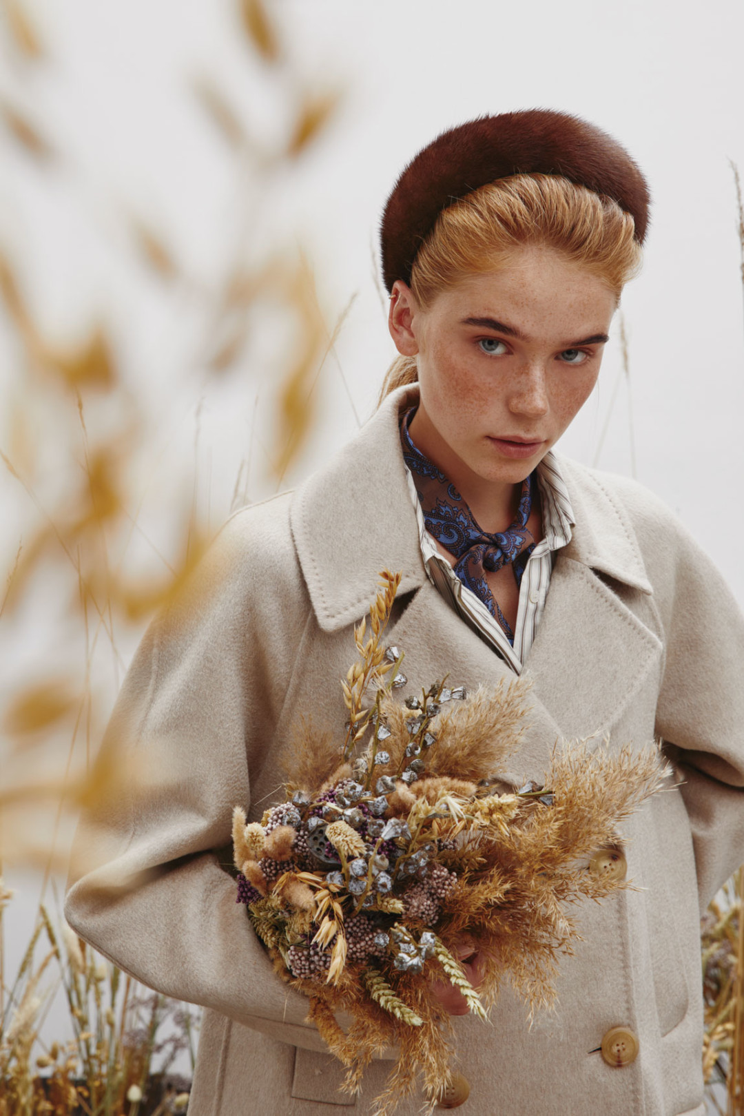 Осенне-зимняя коллекция бренда выдержана в оттенках бежевого, охры, красного дерева и темного шоколада с контрастным добавлением молочного и кипенно-белого. В нее вошли объемные кашемировые пальто с деталями из тонкого стриженого меха, велюровые брюки, шерстяные пиджаки, свободные костюмы, вязаные кардиганы, шейные платки, гольфы, кожаные поясные сумки, сумки-мессенджеры с меховой отделкой и широкополые шляпы. Монохромные образы разбавлены принтом в полоску, клеткой гленчек, шотландкой, пепита, а также паттерном пейсли.