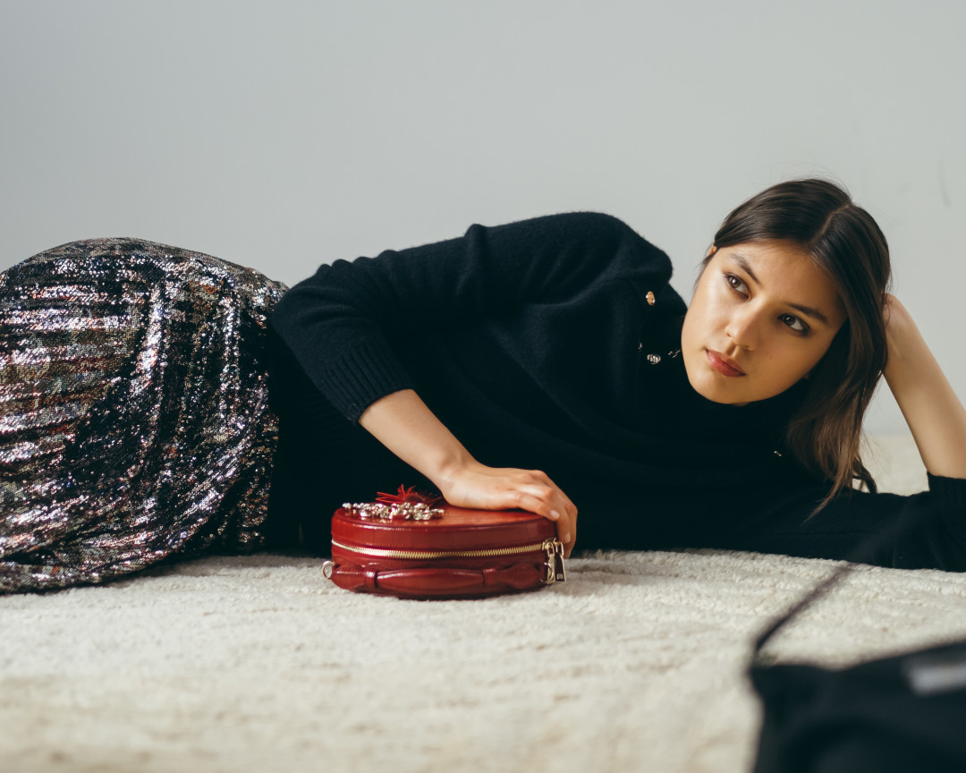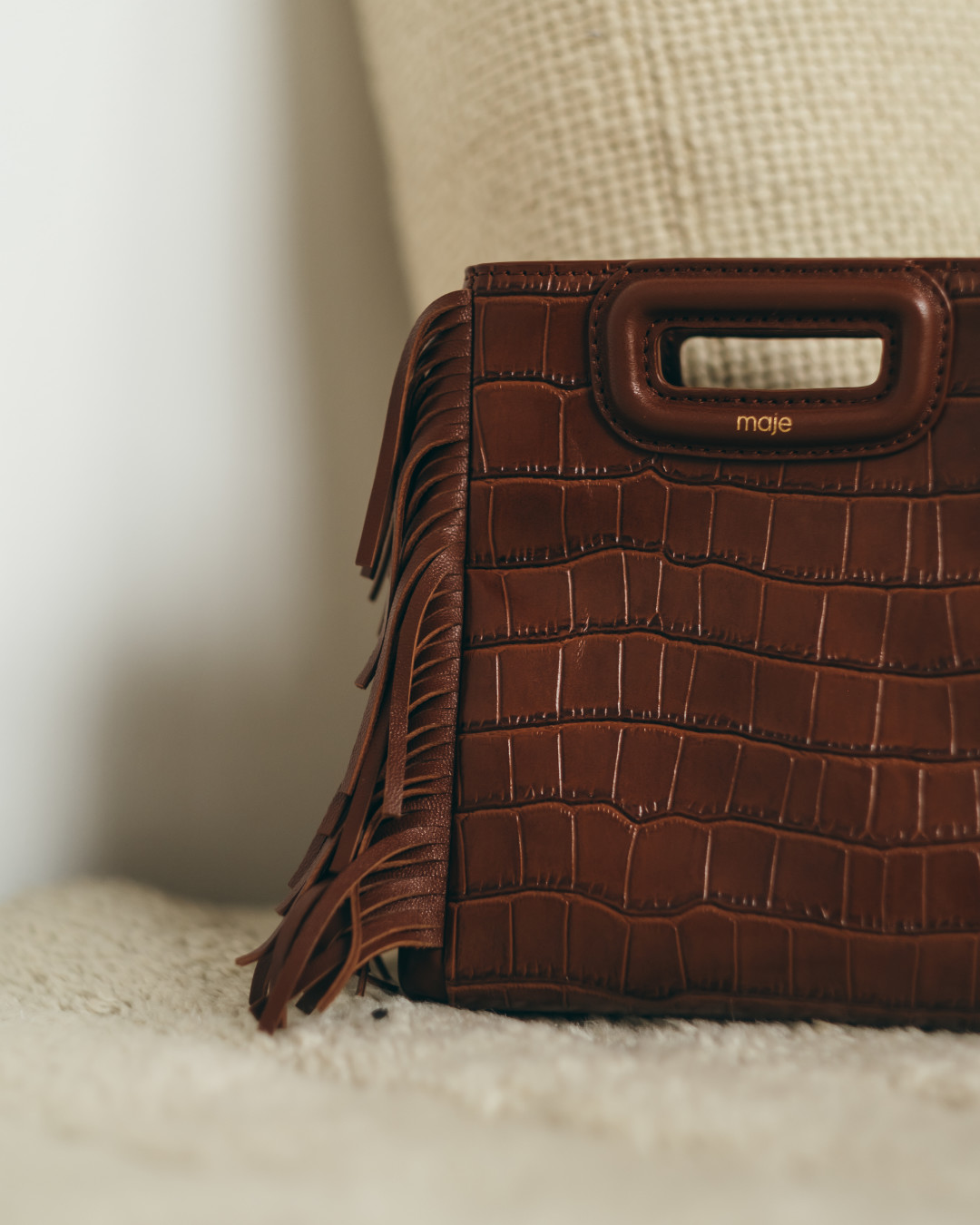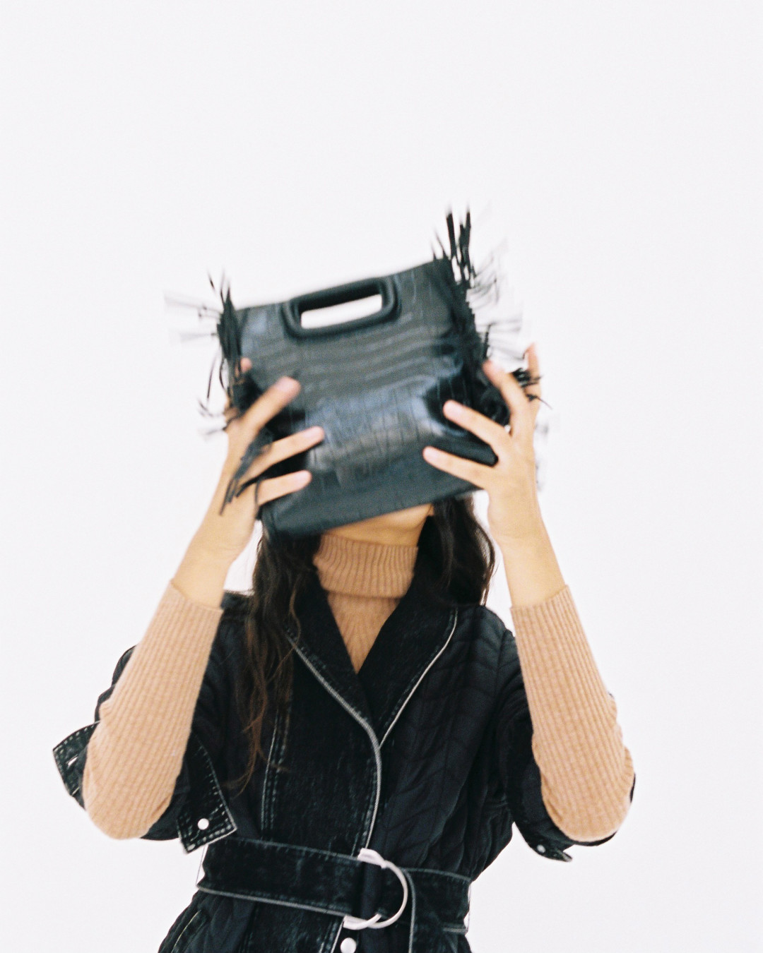 «Да будет свет!», — решили Maje и при работе над новыми аксессуарами решили использовать горный хрусталь, люрекс, золотые сердца, глянцевую кожу, тиснение по крокодила и фактуру лоскутных одеял. Не обошлось и без фирменного логотипа бренда — двойная «М» украсила сумки-трапеции, сумки-чехлы, круглые сумки, ремни и украшения. Бонусом — новые цвета знаковых вещей Maje.