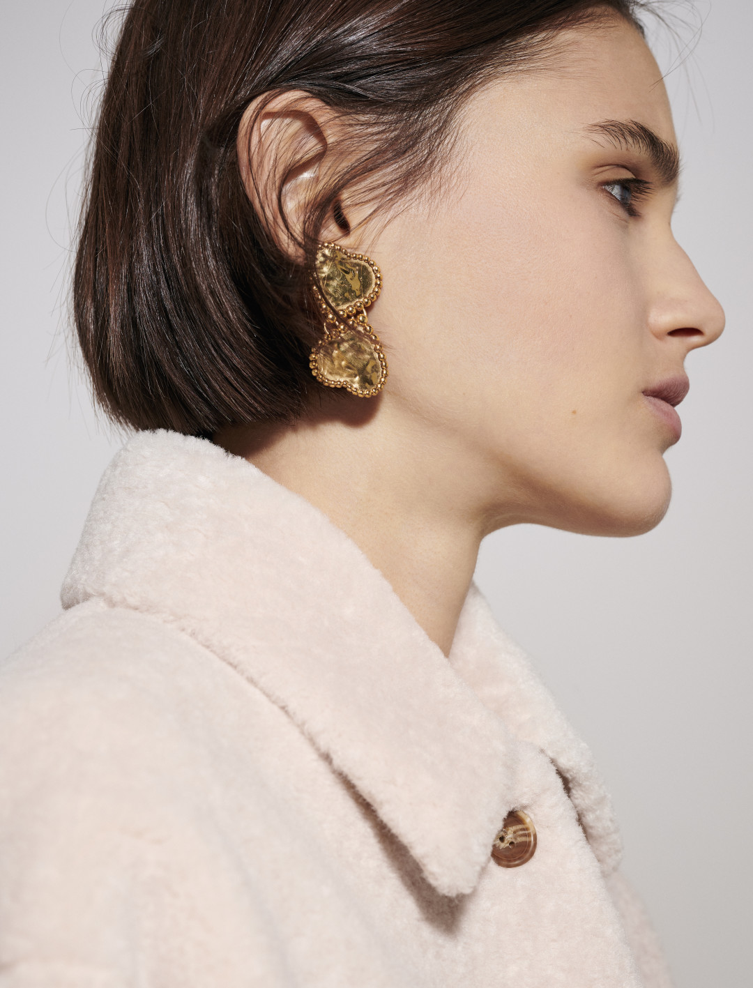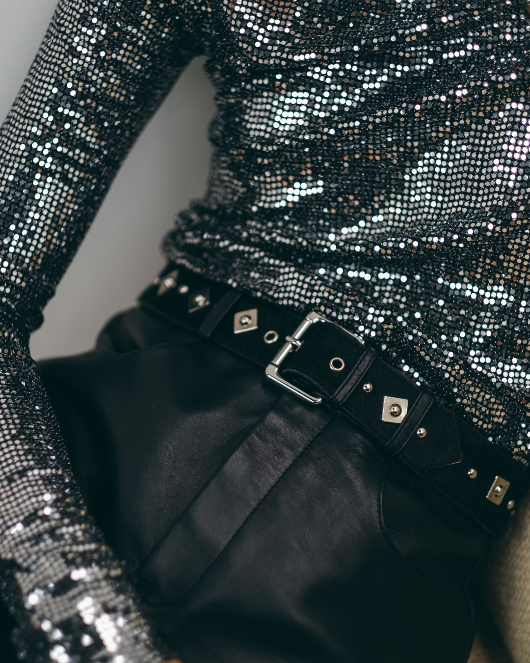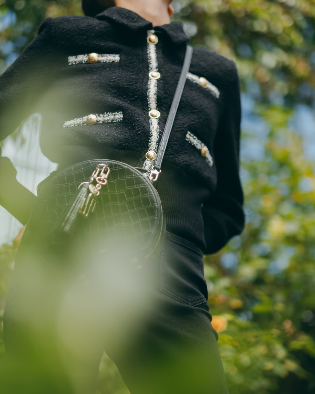 «Да будет свет!», — решили Maje и при работе над новыми аксессуарами решили использовать горный хрусталь, люрекс, золотые сердца, глянцевую кожу, тиснение по крокодила и фактуру лоскутных одеял. Не обошлось и без фирменного логотипа бренда — двойная «М» украсила сумки-трапеции, сумки-чехлы, круглые сумки, ремни и украшения. Бонусом — новые цвета знаковых вещей Maje.
