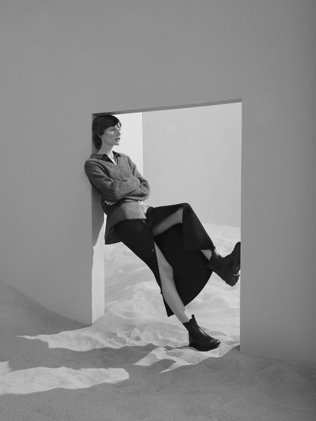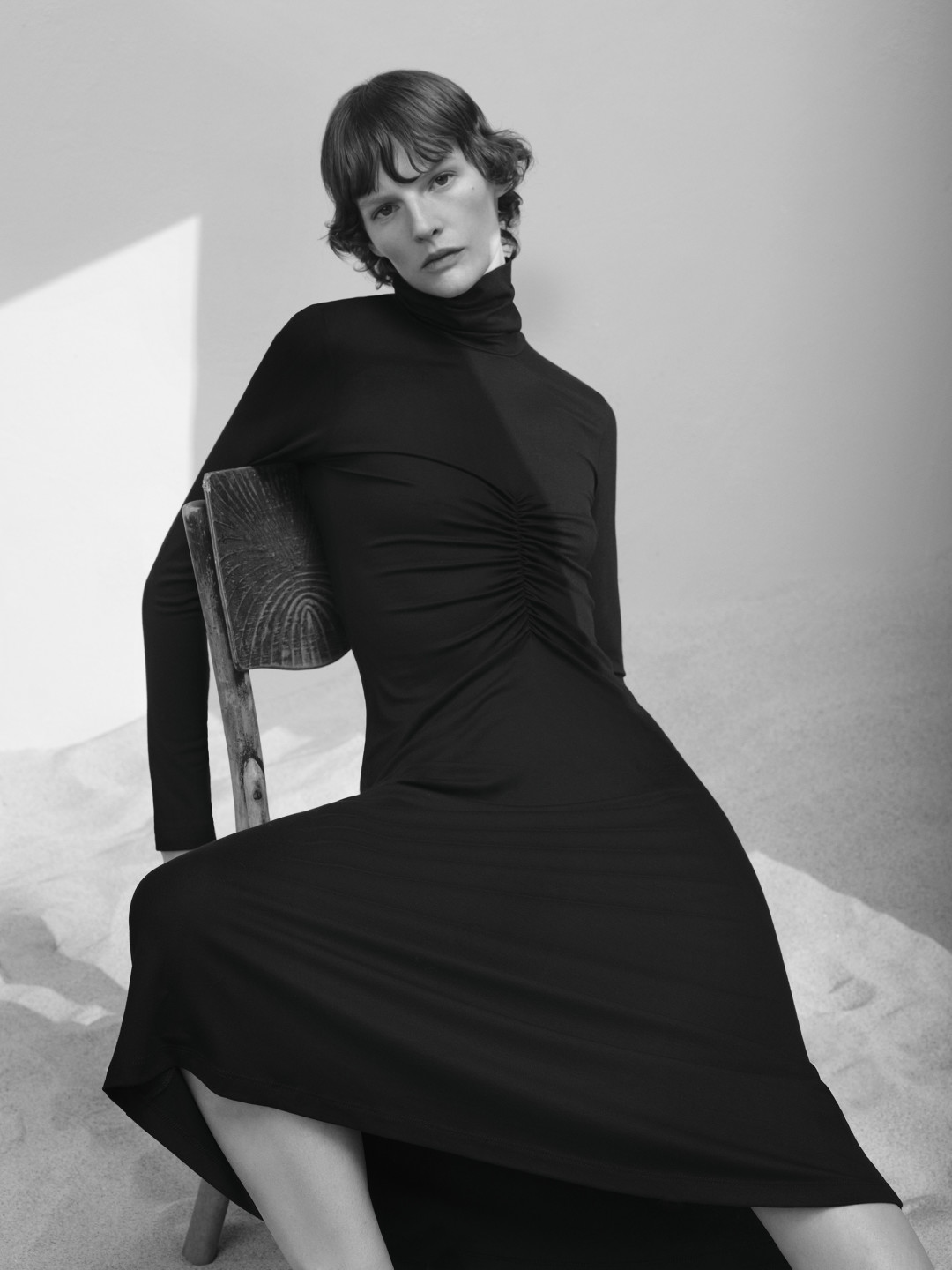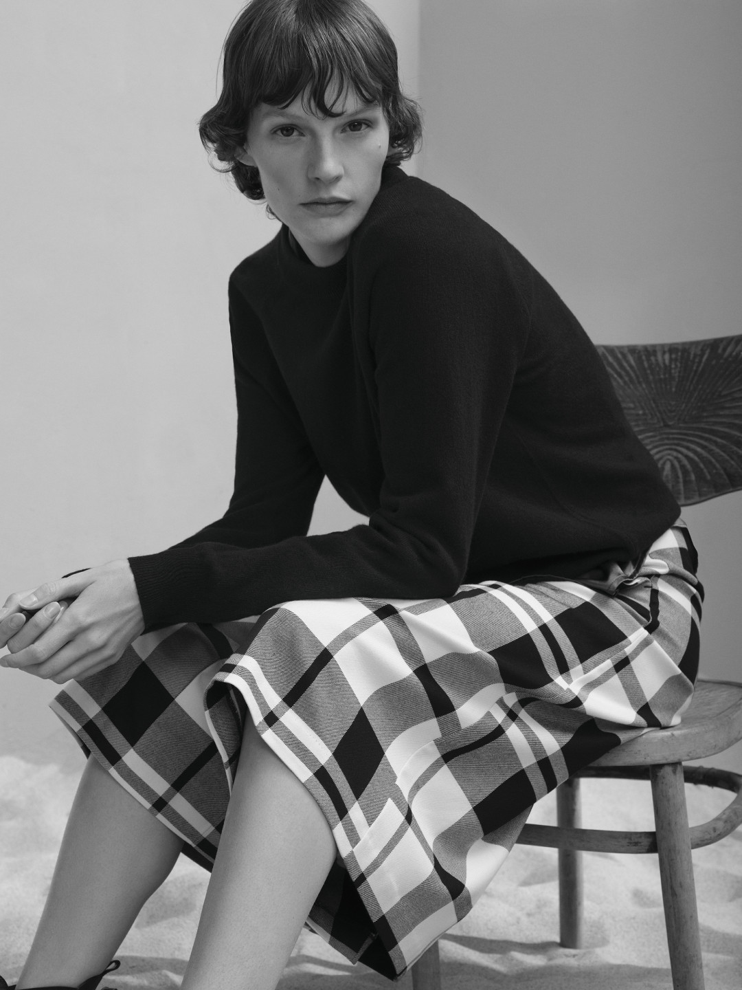 Новая коллекция польского бренда состоит из легкого пальто, вдохновленного 90-ми, костюмов с узкими и широкими брюками, платьев, трикотажных костюмов, жакетов, рубашек, свитеров и водолазок. Кроме базовых вещей, в Premium Sustainable вошли и трендовые, например, кюлоты (они возвращаются, да), черно-белое клетчатое пальто, кардиганы и стеганная куртка. Среди аксессуаров ботильоны на шнуровке и поясные сумки.