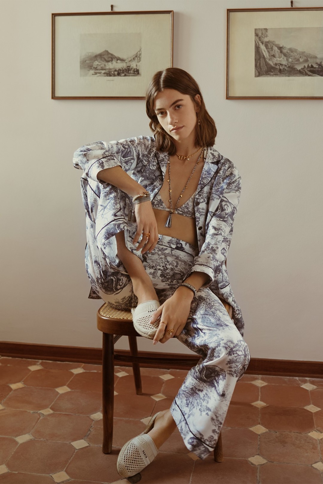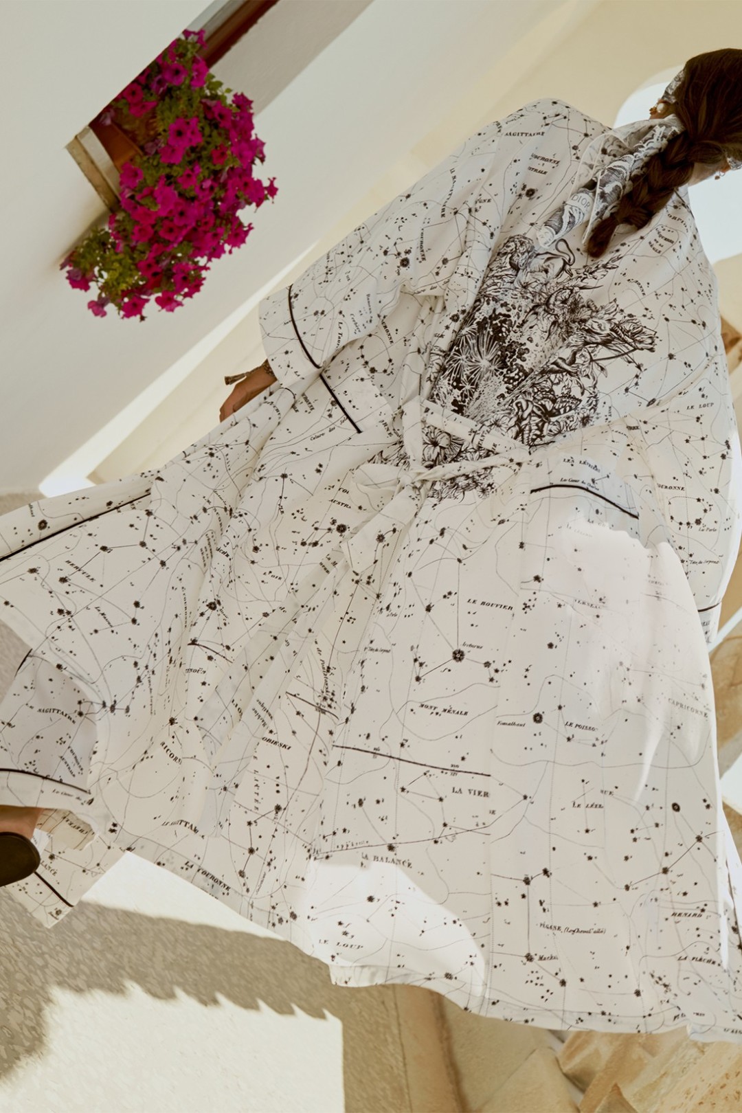 В капсулу вошла одежда для дома: футболки, шорты, свободные свитеры, брюки, халаты, и пижамы. На этот раз креативный директор Dior Мария Грация Кьюри работала вместе с итальянским современным художником Пьетро Руффо. Он создал принты в виде характерных для его творчества зодиакальных созвездий, которые украсили вещи коллекции.