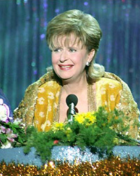 Похоже, что новые русские бабки хорошо осведомлены о конфликте Алены Ахмадуллиной и Ульяны Сергеенко и своими концертными костюмами стараются примерить двух конкурирующих дизайнеров. Их a la russe наряды совмещает и платочки-цветочки от Ульяны и фирменный трикотаж от Алены.