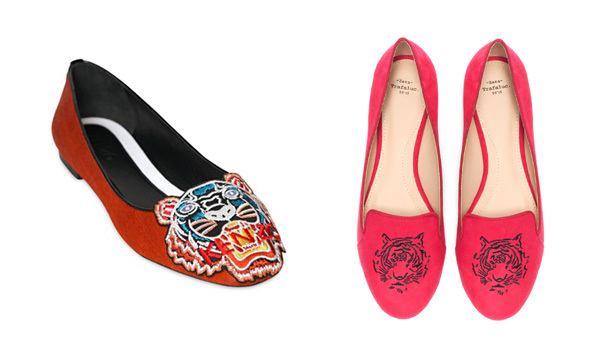 Каждому моднику — по тигру Kenzo. Маниакальное увлечение свитшотами с тиграми марки перешло на мягкие слиперы. Разницы между оригиналом и копией нет — обе пары сделаны из замши и в нескольких цветах.