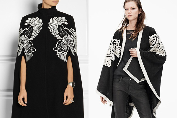 Если вы в восторге от осенне-зимней коллекции Стеллы МакКартни, то вам — в Mango. Костюмы, пальто, блузы и свитеры выполнены в точности как оригинал, только из других материалов. К примеру, это пончо — явный муляж зимнего кейпа британского дизайнера.