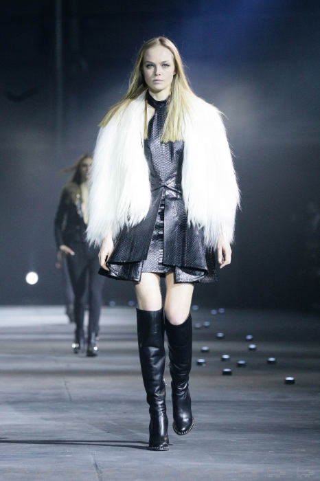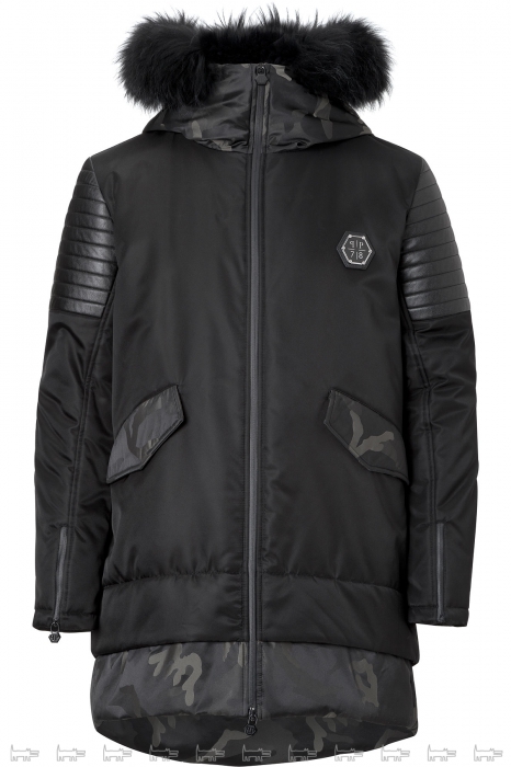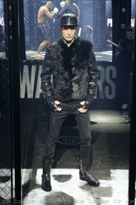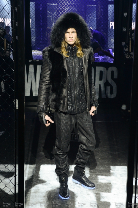 Дизайнер представил куртки-пуховики, которые стали основным атрибутом осенне-зимней коллекции PhilippPlein 2015 – классический черный цвет, кожаные вставки, мех, молнии, декорированные застежкой в виде трехмерного образа пантеры или нашивка, напоминающая восьмиугольник для боев без правил.