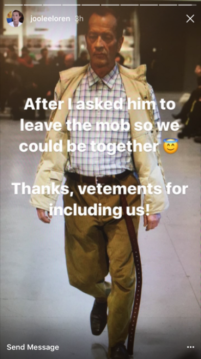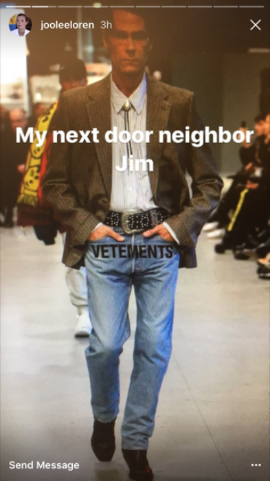 Смешные подписи к моделям с показа Vetements на следующий день после показа стала популярной игрой в «Фэйсбуке»: «Я иду на ЕГЭ», «Подпиши больничный, я в кадры отнесу» или «Иду за пенсией в Сбербанк».